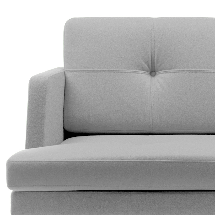 - Niedrige Rückenlehne mit gestepptem Rückenkissen und dekorativen Knöpfen