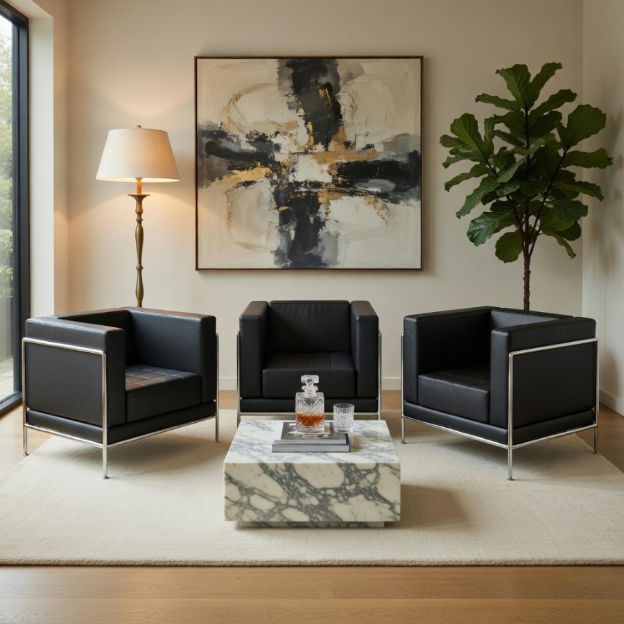 - Bezugoberflächen in Leder in Weiß oder Schwarz wählbar