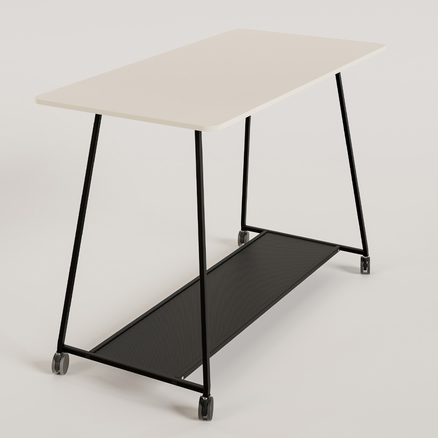 Die offene Unterkonstruktion bietet Platz für kabelintegrierende Media-Module und Zubehör wie Whiteboards oder Projektwagen – alles nach Bedarf kombinierbar.