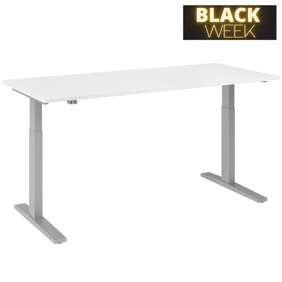 Schreibtisch ACTION elektrisch höhenverstellbar - Weiß - Silber