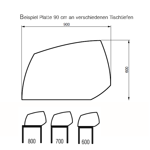 • Variante 3 -  B 90 cm x H 60 cm x T 0,6 cm (Empfohlen für Tischtiefe 70 cm - somit ergibt es 20 cm Überstand)