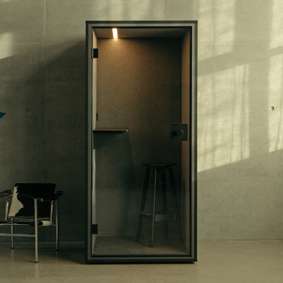 Die Berlin Acoustics Focus zeichnet sich durch ein schlichtes und dennoch ästhetisch ansprechendes Design aus. Diese Telefonkabine setzt bewusst auf Minimalismus, Moderne und Zeitlosigkeit, ohne unnötige oder kostspielige Extras. Dennoch bieten ihre Kabinen alles, was für ein effizientes Arbeiten benötigt wird, und sie sind eine ideale Ergänzung für jedes Büro. Der Auf- und Abbau ist dank des simplen Designs in nur 30-60 Minuten problemlos möglich.