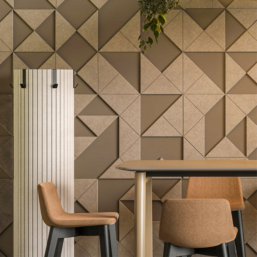 Im Zentrum des Designs steht ein architektonisches Element mit Symbolkraft: die skulpturale, zylindrische Mittelsäule, inspiriert von klassischen Säulenformen, die Stärke und Stabilität verkörpern. Diese wird modern interpretiert und mit PET-Filz ummantelt, dessen vertikale Struktur sowohl visuelle Tiefe als auch akustischen Mehrwert schafft.