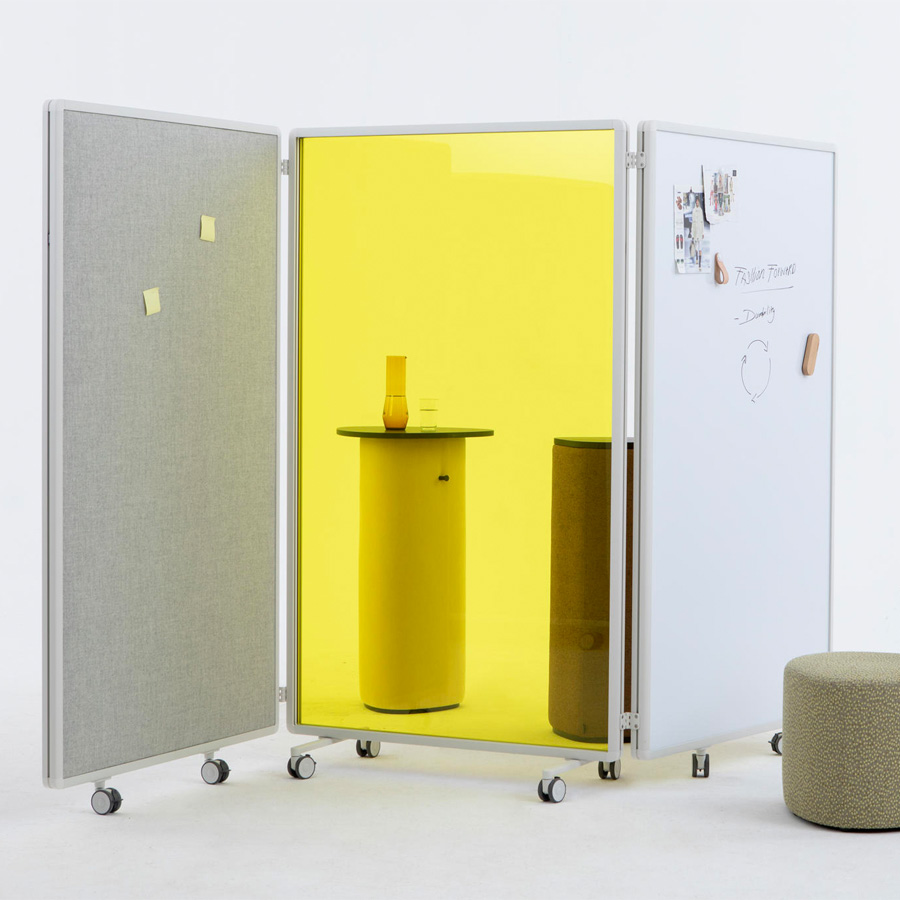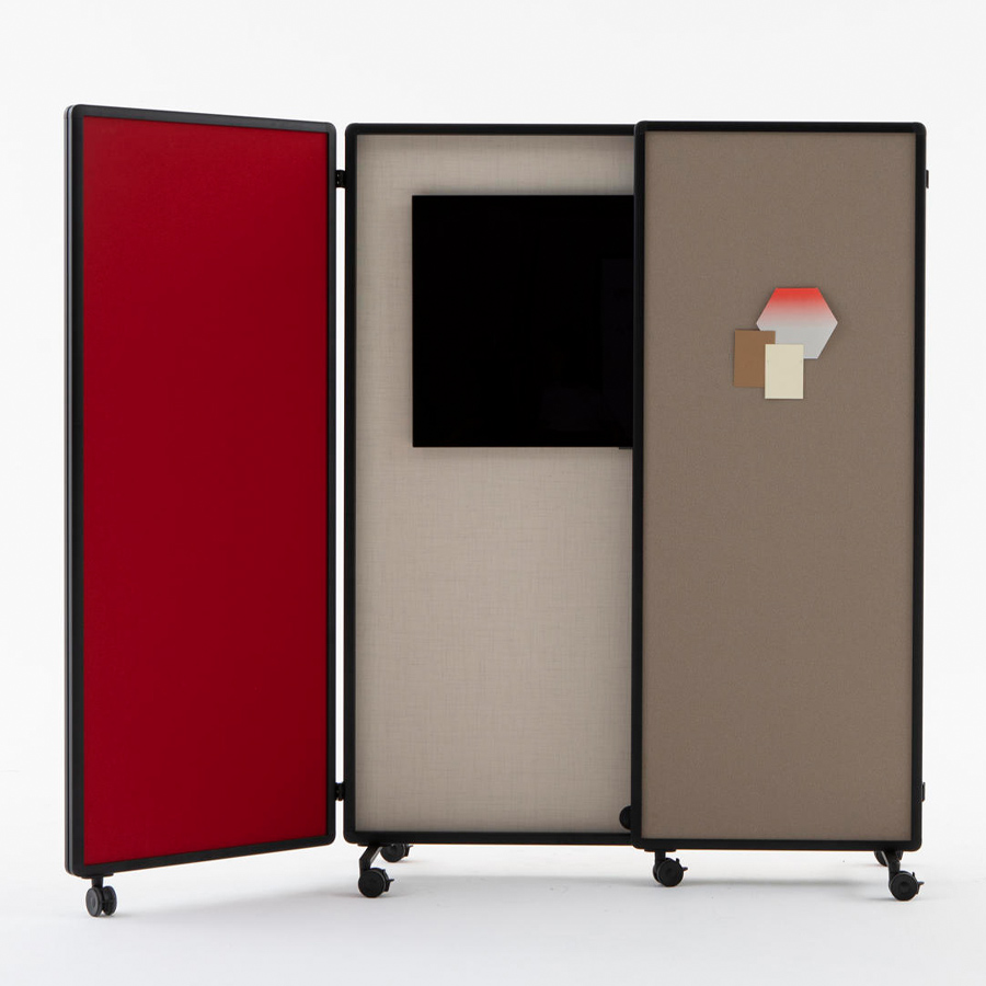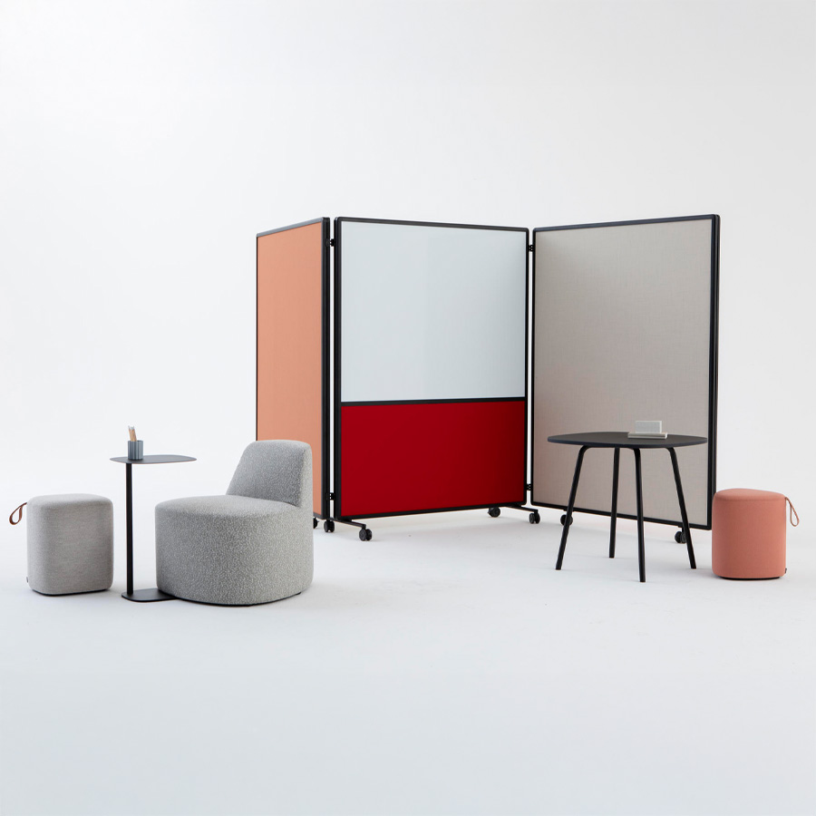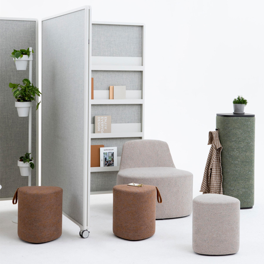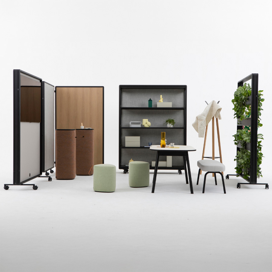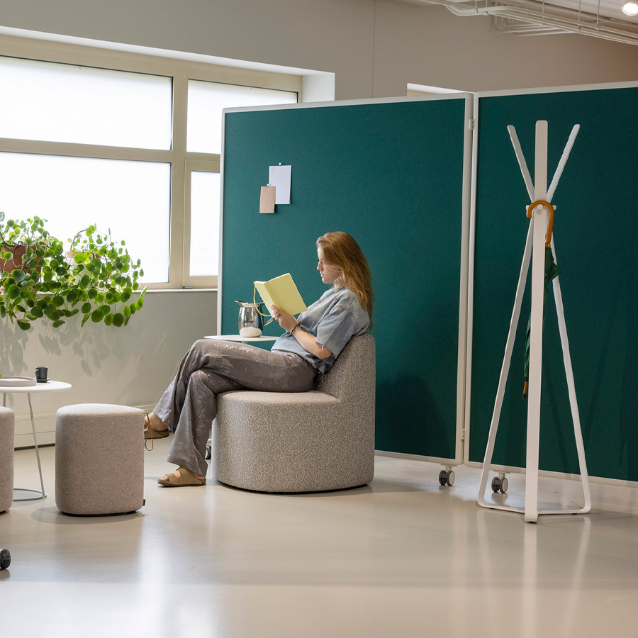 Die Patio Kollektion ist ein flexibles, modulares Raumteilersystem von Cascando, entworfen von Robert Bronwasser, das hybride Arbeitslandschaften sowohl funktional als auch ästhetisch gestaltet. Mit vertikaler Struktur, hochwertigen, pulverbeschichteten Aluminiumrahmen und mobiler Flexibilität auf Rollen schaffen die Elemente schnell private Bereiche, Besprechungsnischen oder Zonen zur Konzentration. Ob als Patio Single (einfaches Element), Connect (modulare Verbindung), Fold (klappbar) oder Double (mit Stauraum) – jedes Element lässt sich individuell mit Akustikpaneelen, Whiteboards, Garderobe oder Vorhängen anpassen.