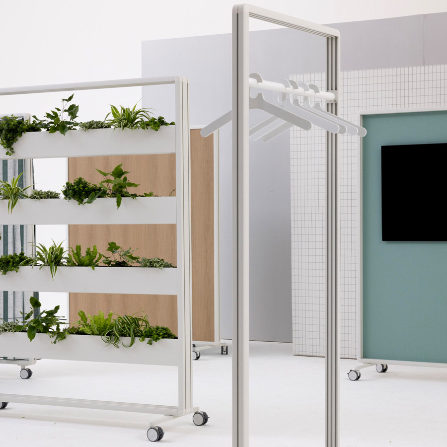 - Konfigurierbar mit Kleiderhaken, Akustikwand, Whiteboard, Regale oder Holzverkleidung