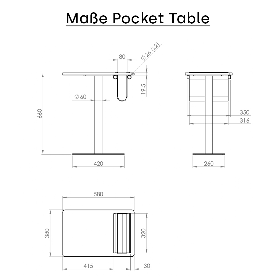 Maße Pocket Table