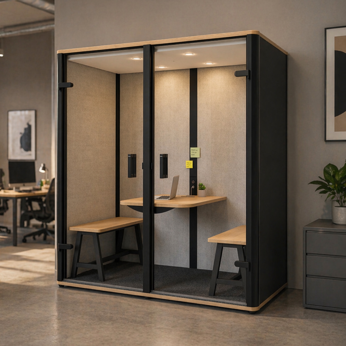 Der bosselino duo schafft einen abgeschirmten Rückzugsort mitten im Büro – perfekt für Meetings, konzentriertes Arbeiten oder kreative Prozesse. Dank effektiver Schallabsorption bleiben Störungen draußen und Gespräche drinnen. So entsteht eine produktive Atmosphäre, in der Teams effizient zusammenarbeiten und Ideen frei fließen können.