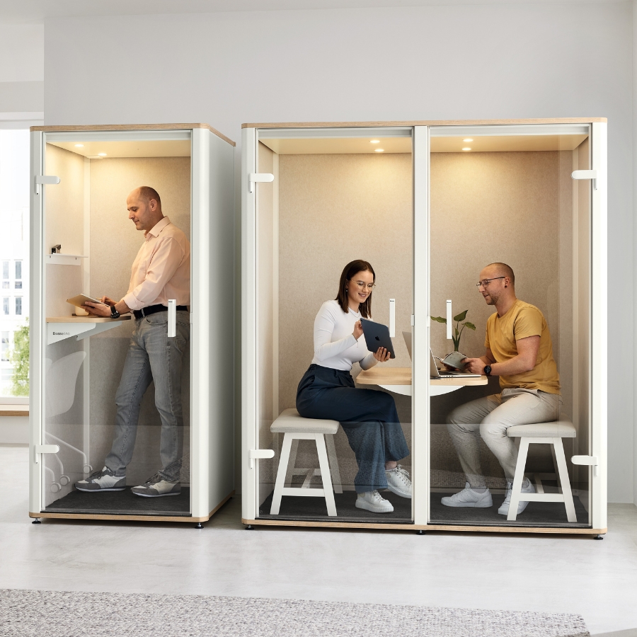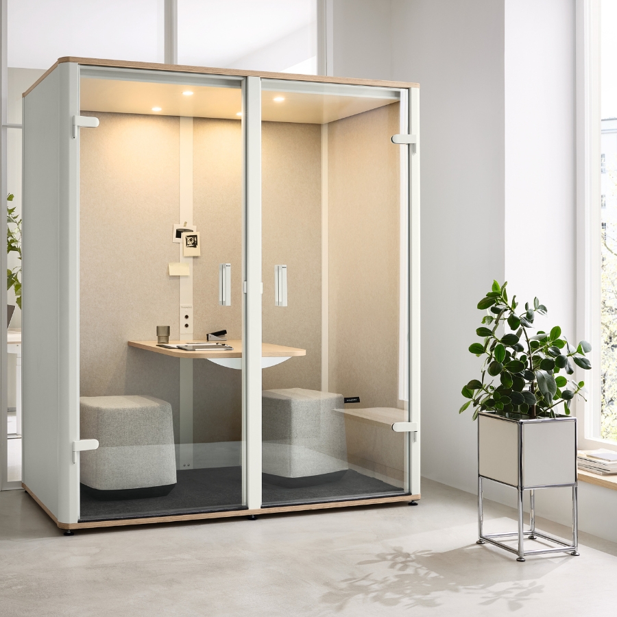 Der bosselino duo schafft einen abgeschirmten Rückzugsort mitten im Büro – perfekt für Meetings, konzentriertes Arbeiten oder kreative Prozesse. Dank effektiver Schallabsorption bleiben Störungen draußen und Gespräche drinnen. So entsteht eine produktive Atmosphäre, in der Teams effizient zusammenarbeiten und Ideen frei fließen können.