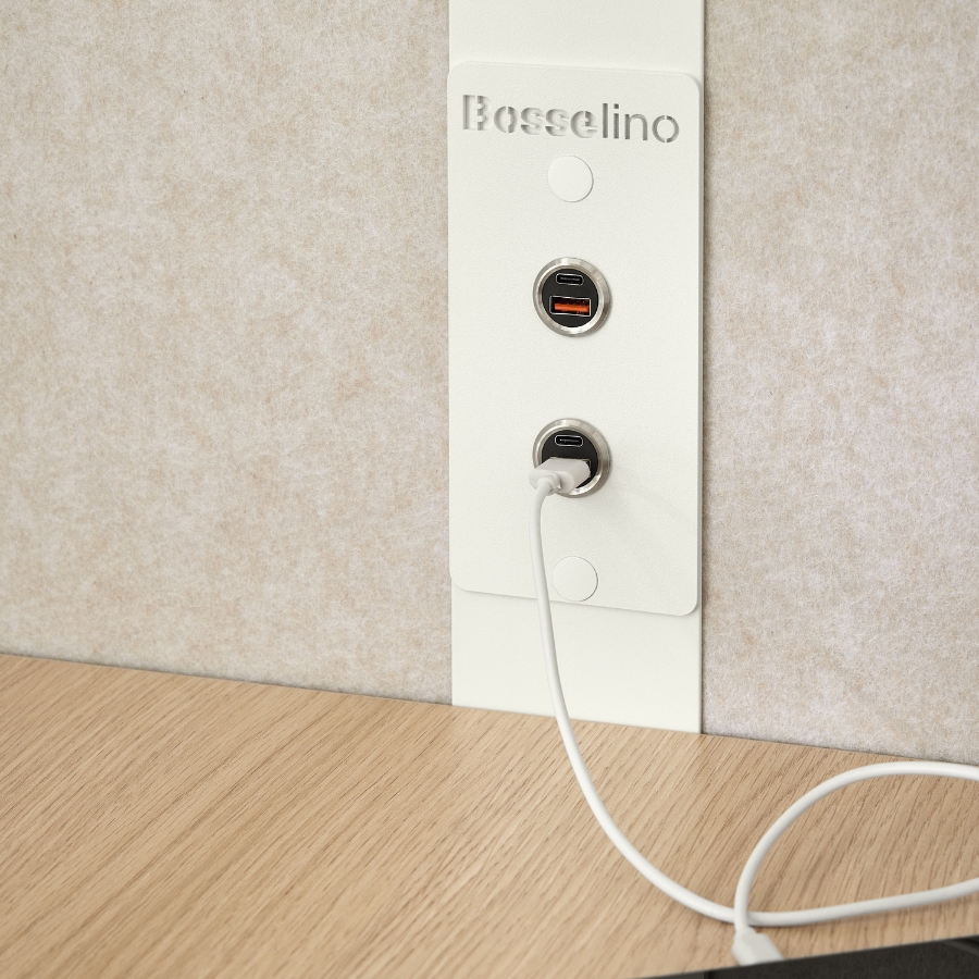 Mit großzügiger Tischfläche, integrierten USB-Ladeoptionen und optionalen Sitzlösungen passt sich der bosselino duo flexibel an unterschiedliche Arbeitsweisen an. Blendfreie Beleuchtung und leistungsstarke, geräuscharme Ventilation sorgen für ein angenehmes Raumklima – auch bei längeren Meetings. Alles ist darauf ausgelegt, produktives Arbeiten so komfortabel wie möglich zu machen.