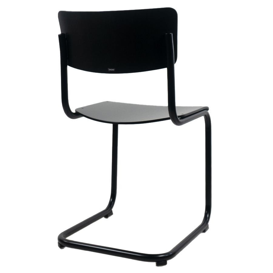 THONET Stahlrohr-Freischwinger S 43 Formholzschale schwarz gebeizt - Gestell verchromt THONET S 43 | Buche schwarz gebeizt | Stahlrohr-Freischwinger | Gestell verchromt