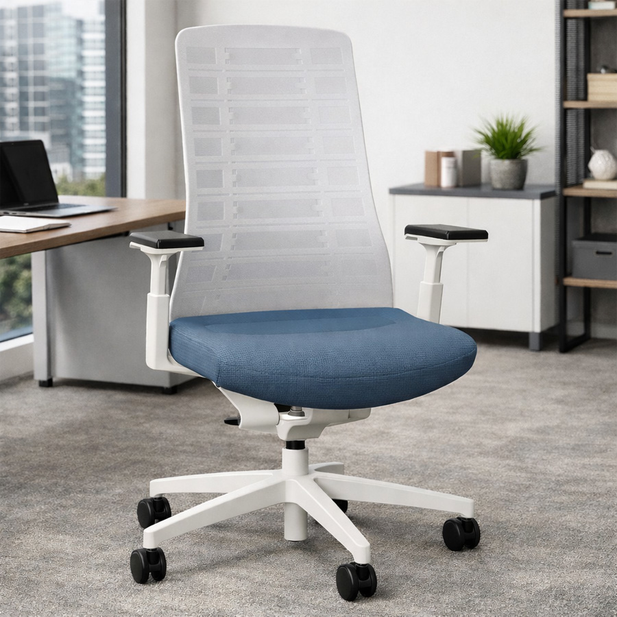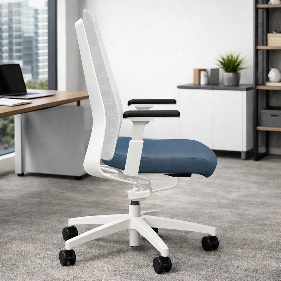 Interstuhl PUREis3 PU213 Bürostuhl | Netzrücken weiß | Bezug blaugrau | 4D-Armlehnen