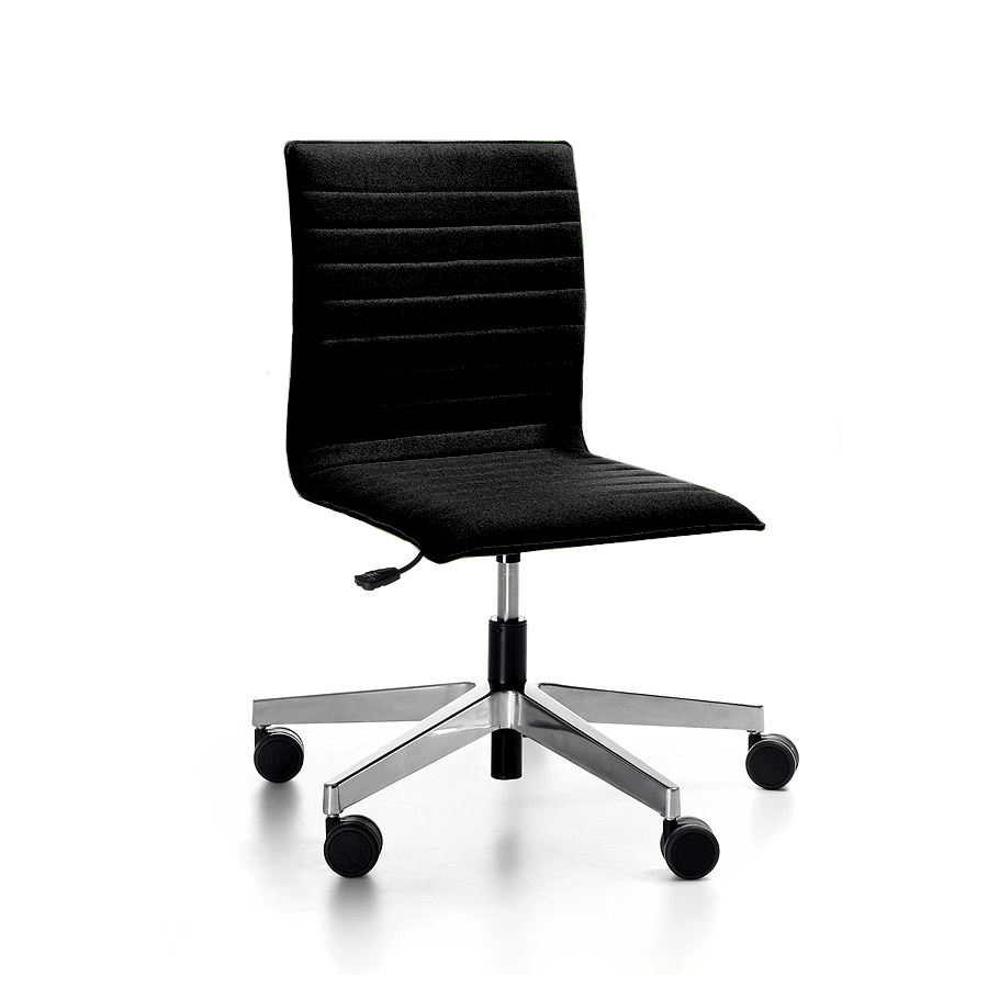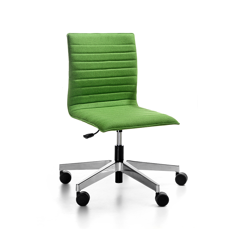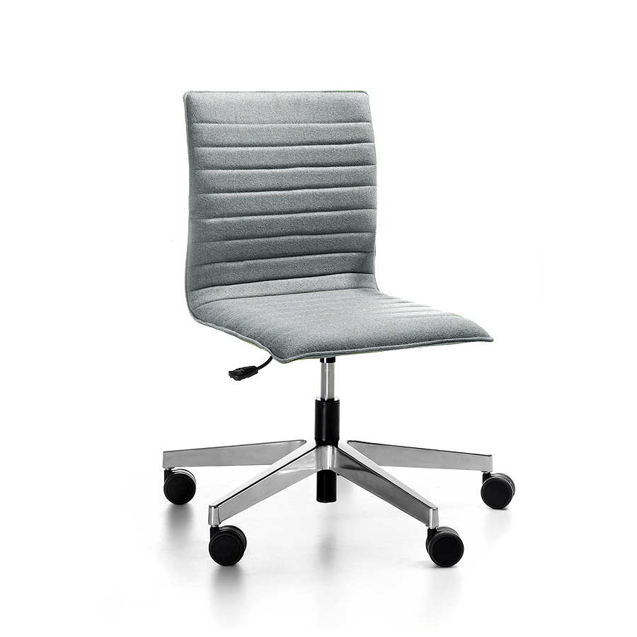 Klar in der Formensprache mit horizontalen Nähten im Bezugsstoff ist der höhenverstellbare Drehstuhl universal einsetzbar.