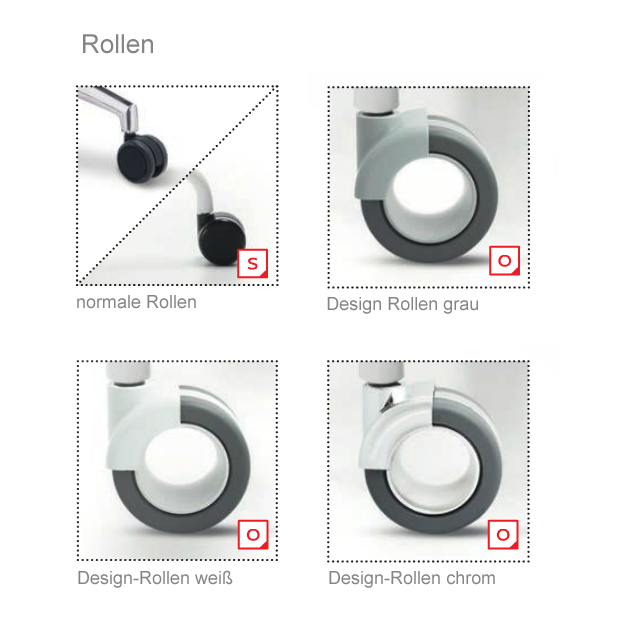 - Gegen Aufpreis weiche Rollen für harte Böden