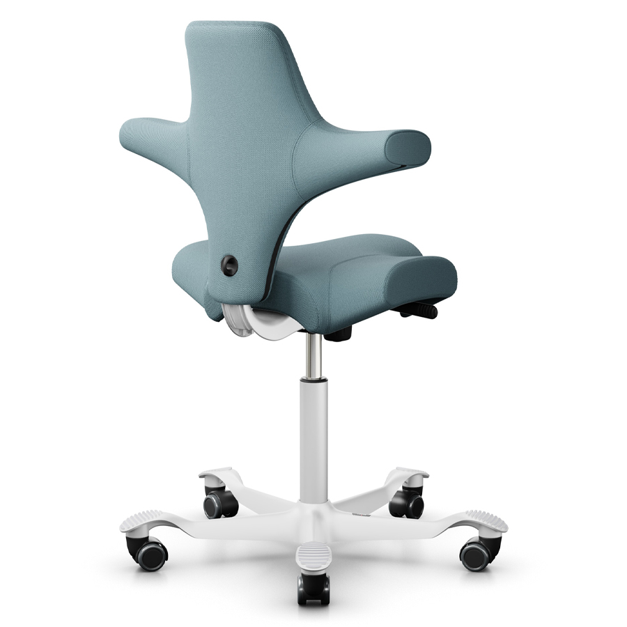 - Sattelform: Der Sitz des Capiscos ermöglicht eine Vielzahl von Sitzpositionen: Nach vorne, seitlich und rückwärts. Dies fördert Bewegung und Flexibilität am Arbeitsplatz