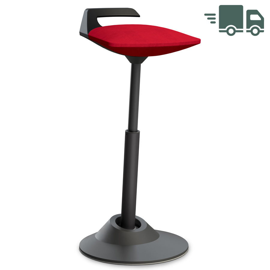 Hier angeboten wird der Muvman Stehstuhl von Aeris mit einem Mikrofaserbezug in Rot. Die Säule und der Standfuß sind in Schwarz gehalten. Verbaut ist die Standard-Feder, die eine Sitzhöhe zwischen 51 und 84 cm bietet. Der Stuhl wird auch mit einer hohen Feder angeboten, die eine Sitzhöhe zwischen 60 und 93 cm bietet.