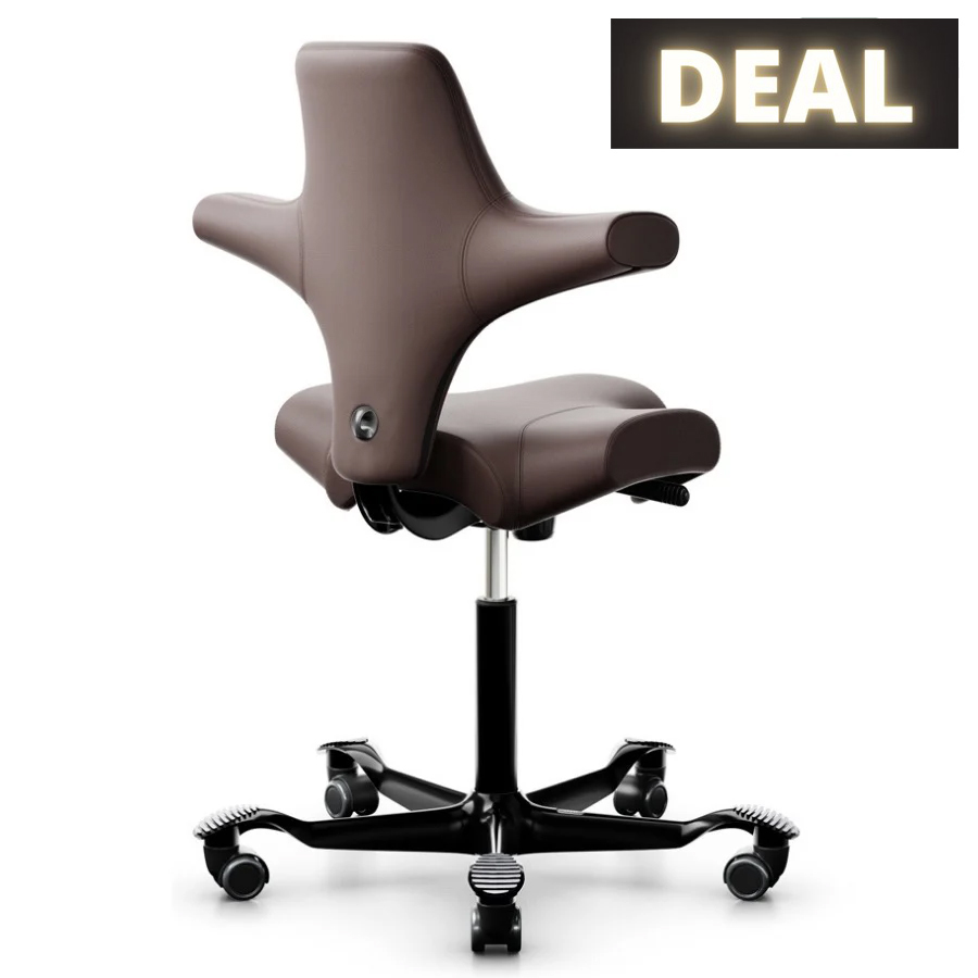 - Sattelform: Der Sitz des Capiscos ermöglicht eine Vielzahl von Sitzpositionen: Nach vorne, seitlich und rückwärts. Dies fördert Bewegung und Flexibilität am Arbeitsplatz
