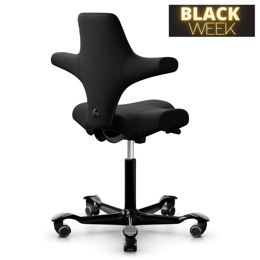 - Sattelform: Der Sitz des Capiscos ermöglicht eine Vielzahl von Sitzpositionen: Nach vorne, seitlich und rückwärts. Dies fördert Bewegung und Flexibilität am Arbeitsplatz