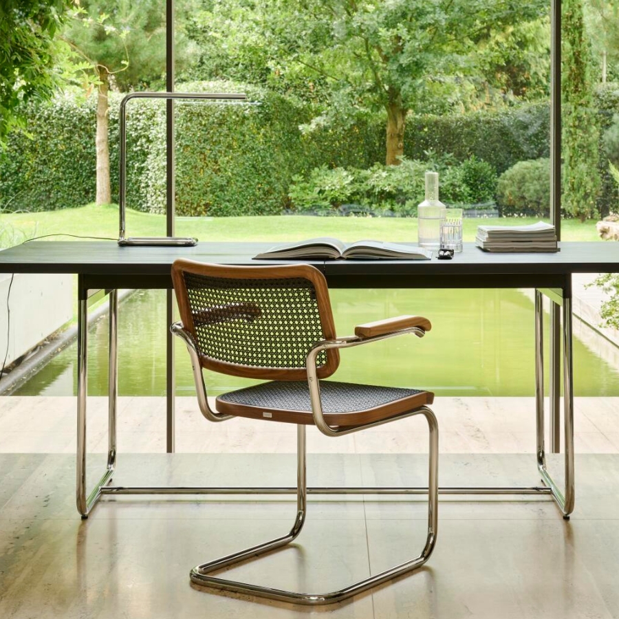 Ihre Vielseitigkeit macht sie zu den bis heute meistverkauften Freischwingern. Marcel Breuer entwarf den S 32 und den S 64 in seiner Berliner Zeit 1928. THONET produziert die beiden Modelle seit 1930. Durch ihre ästhetische Reduktion und Klarheit kombiniert mit dem luftigen Geflecht passen die Klassiker in unterschiedlichste Umgebungen wie Konferenzräume, Wartezonen, Restaurants und in die Wohnungen.