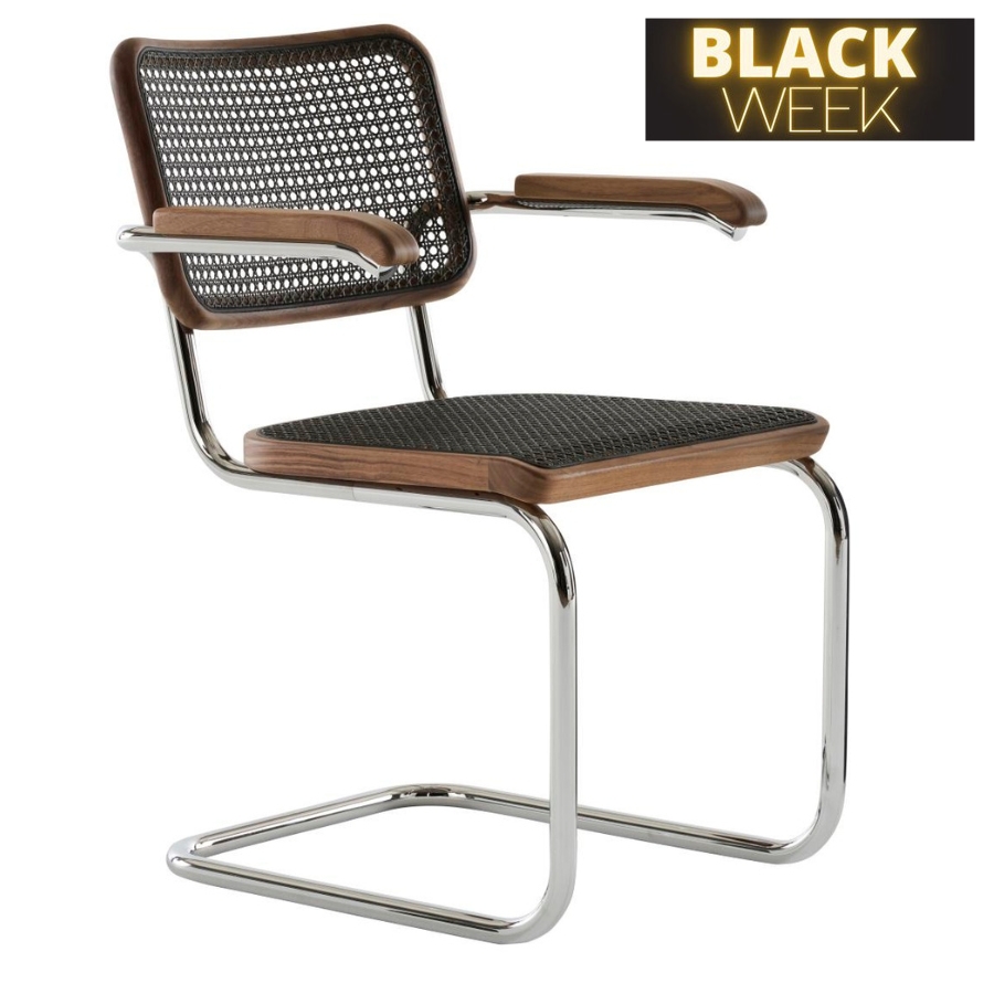 THONET 64 N | Nussbaum Pure Materials | mit Netzbespannung | Stahlrohr-Freischwinger mit Armlehnen kostenloser Versand