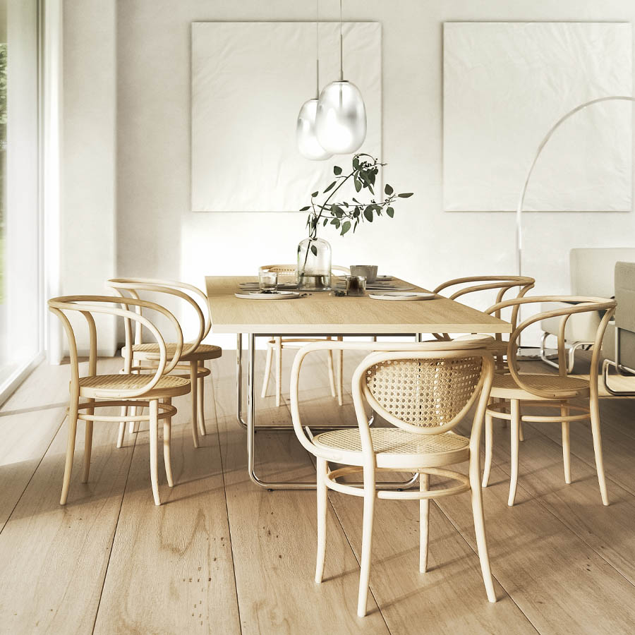 Was die Form angeht, haben Sie beim Esstisch die Wahl zwischen runden und ovalen sowie rechteckigen und quadratischen Modellen. Lassen Sie hierbei nicht nur Ihren persönlichen Geschmack entscheiden, sondern beziehen Sie auch praktische Gesichtspunkte mit ein. An einem runden Tisch können sich alle Anwesenden jederzeit anschauen und besser miteinander kommunizieren. Er kommt zentral im Raum, am besten unter einer schönen Pendelleuchte, wunderbar zur Geltung. Bei ausreichenden Platzverhältnissen ist ein Esstisch, der rund, ausziehbar und aus Holz gefertigt ist, also eine gute Wahl. Im ausgezogenen Zustand nimmt er dann eine ovale Form an. Bei begrenzten Platzverhältnissen ist ein rechteckiger Esstisch aber unter Umständen zu bevorzugen, denn er kann auch an die Wand gestellt werden.