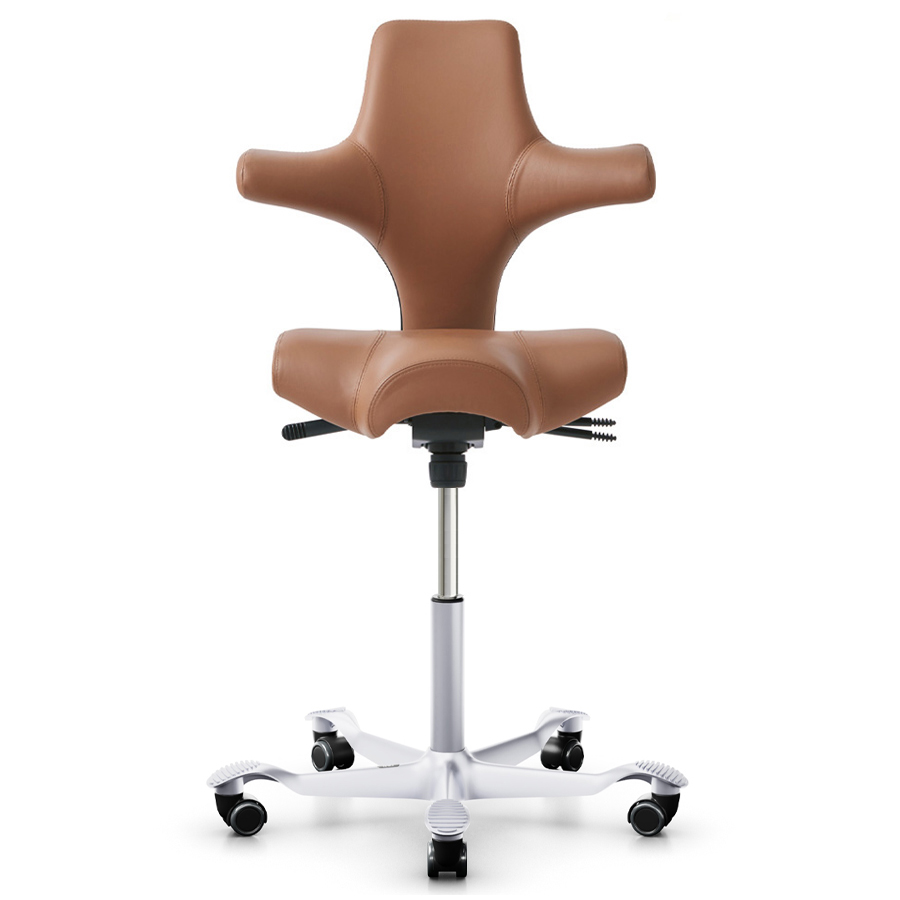 - Sattelform: Der Sitz des Capiscos ermöglicht eine Vielzahl von Sitzpositionen: Nach vorne, seitlich und rückwärts. Dies fördert Bewegung und Flexibilität am Arbeitsplatz