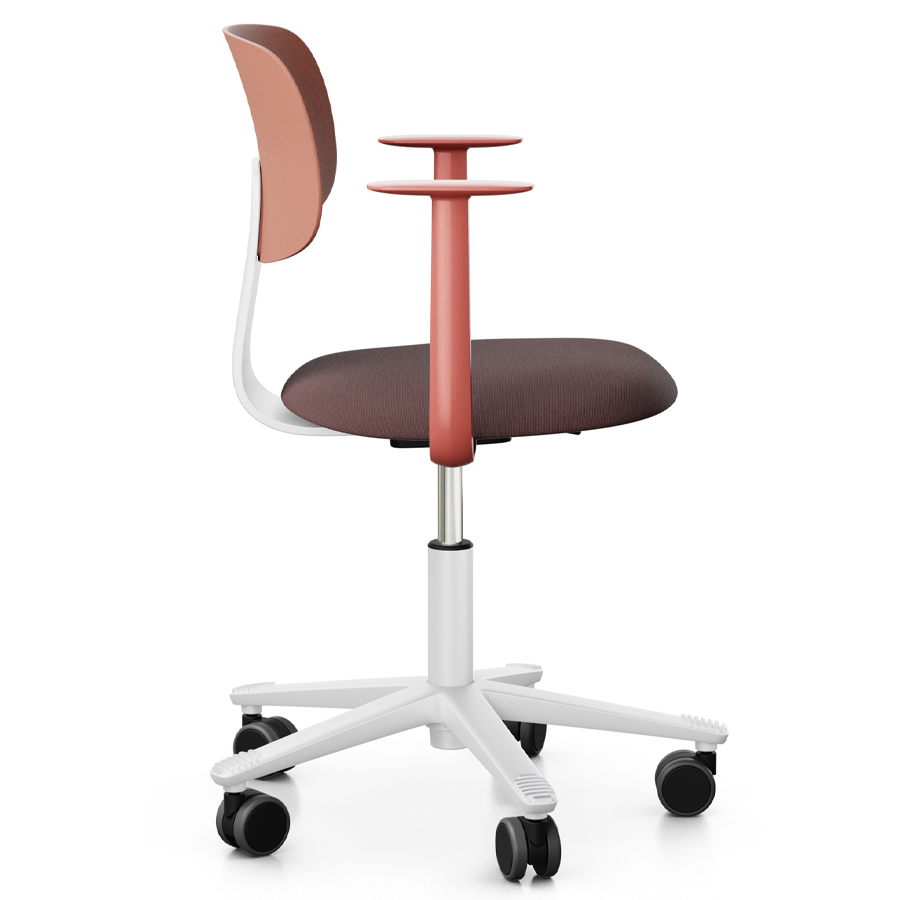 Hier angeboten wird der HAG Tion 2140 mit fixen Armlehnen in Blush Rose (Rückenschale in Blush Rose sowie Rückenlehnenbügel, Gasfederabdeckung und Alu-Fußkreuz in Weiß). Der Sitz ist gepolstert, bezogen mit dem Stoff Select SC61186 kastanie. Verbaut ist die 150 mm Standard-Gasfeder mit einer Sitzhöhenverstellung zwischen 408 - 542 mm.