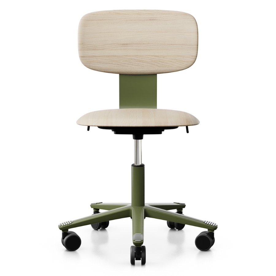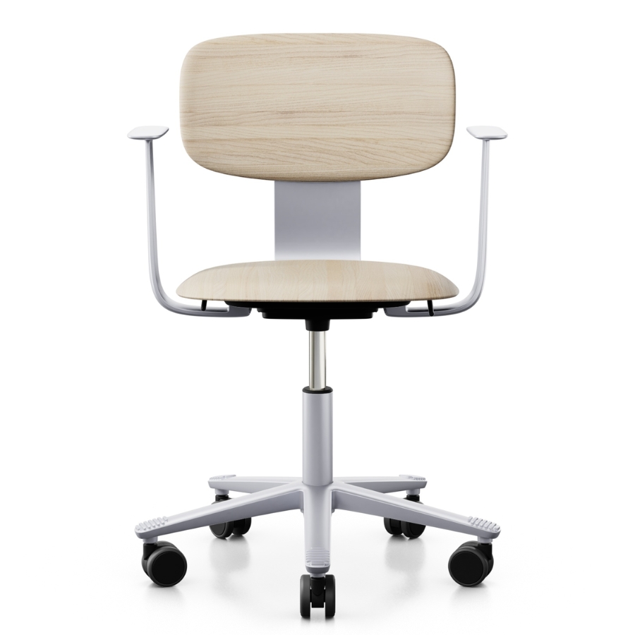 Der Sitz und die Rückenlehne des HÅG Tion 2200 sind aus Holz gefertigt (Esche aus verantwortungsvoller Forstwirtschaft). In Verbindung mit Kernkomponenten aus 97–98% recyceltem Aluminium ist HÅG Tion 2200 eine ausgezeichnete nachhaltige Wahl, da insgesamt 77% recycelte und erneuerbare Materialien enthalten sind. Die Armlehnen sind optional erhältlich.