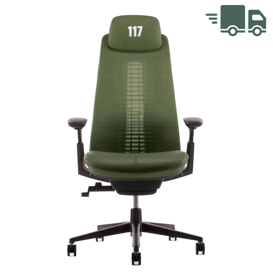 Gemeinsam mit Microsoft hat Haworth eine exklusive Ausführung des bekannten Bürostuhls Fern entwickelt. Diese Version bietet Gamern nicht nur erstklassigen Komfort bei langen Spielsitzungen, sondern dient gleichzeitig als echter Blickfang. Der Sitzbezug besteht aus hochwertigem Echtleder und das Netz im Rückenbereich präsentiert sich in attraktivem Olivgrün.