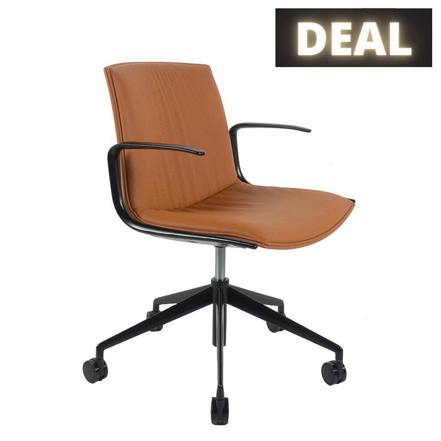 Arper CATIFA Up Leder Elmo soft mit Armlehnen - Drehgestell mit Rollen