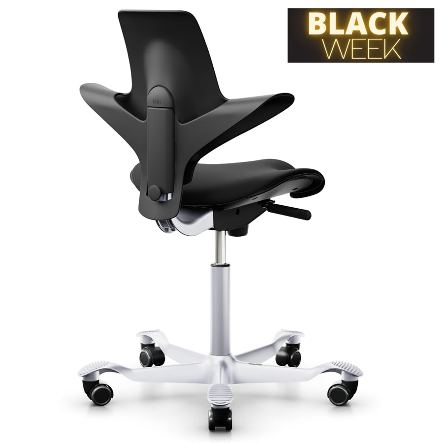 - Sattelform: Der Sitz des Capiscos ermöglicht eine Vielzahl von Sitzpositionen: Nach vorne, seitlich und rückwärts. Dies fördert die Bewegung und Flexibilität am Arbeitsplatz