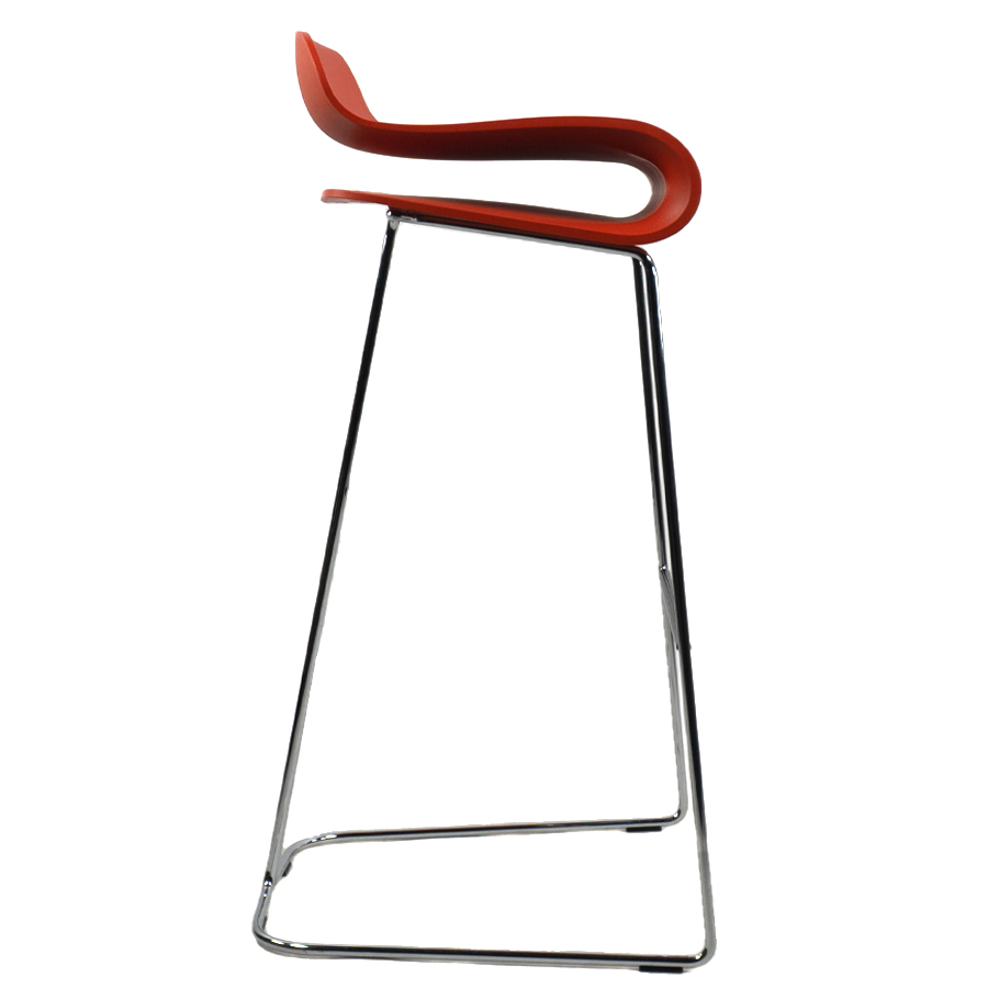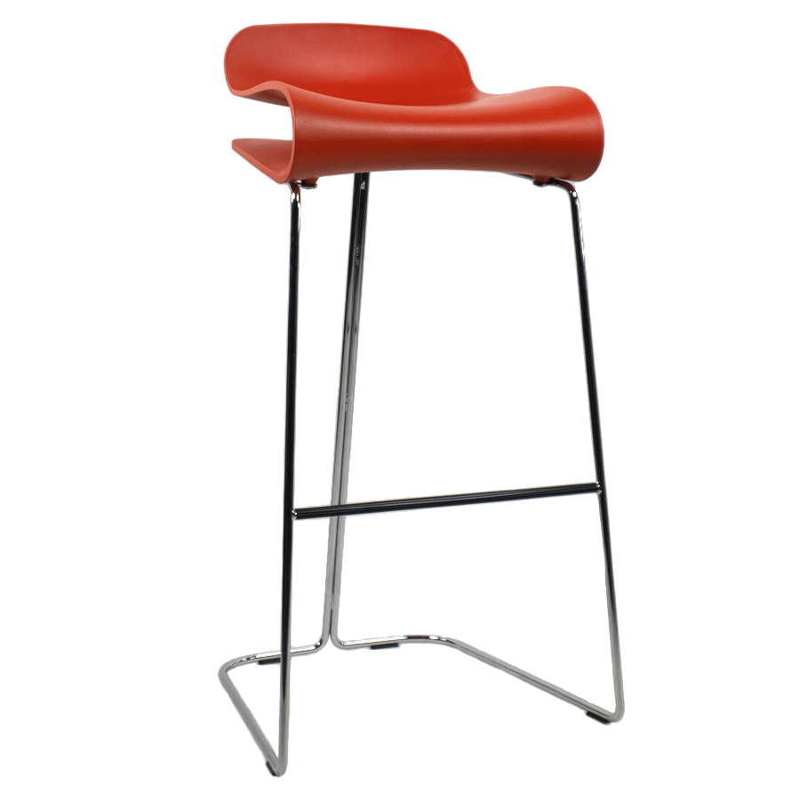 Kristalia BCN Barhocker mit Kufengestell verchromt | Schale korallenrot | Höhe 66 cm