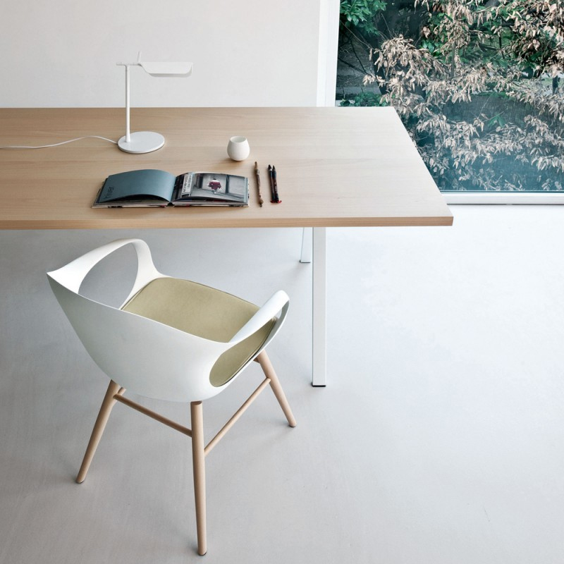 “Die Inspiration, die zur Entstehung dieses Stuhls geführt hat, geht bereits auf das Jahr 1998 zurück, aber erst das Treffen mit Kristalia 12 Jahre später führte zur Verwirklichung der Idee. Der erste Schritt bestand darin, mehr als 2500 am Markt erhältliche Stühle zu prüfen, um dann eine völlig neue, einladende und leichte Form zu zeichnen. „