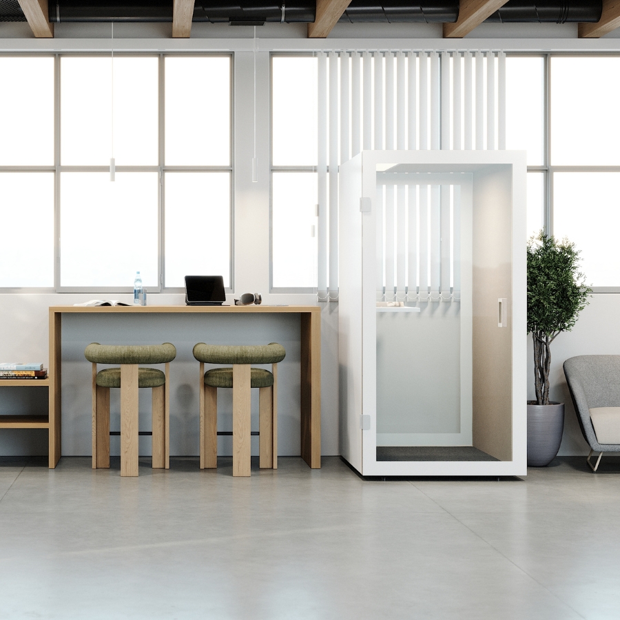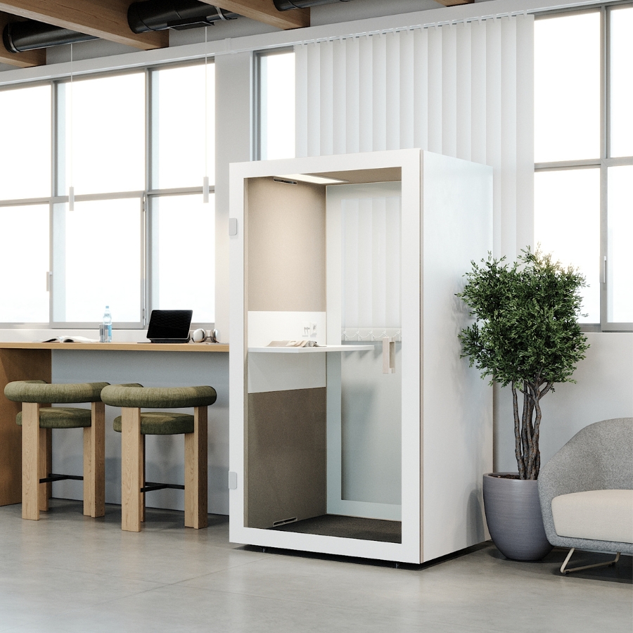 Die RWH Cube 1 Akustikbox ist die perfekte Lösung für moderne Büros, die Wert auf Privatsphäre, Konzentration und Komfort legen. Entwickelt für maximale Funktionalität, kombiniert sie hochwertige Materialien, präzise Verarbeitung und innovative Technik zu einem außergewöhnlichen Rückzugsort im hektischen Büroalltag. Die durchdachte Kombination aus Beige, Weiß und Holz schafft eine wunderbar gemütliche Atmosphäre. Diese Materialpalette sorgt für zeitlose Eleganz und Vielseitigkeit und passt zu einer Vielzahl moderner Gestaltungskonzepte.