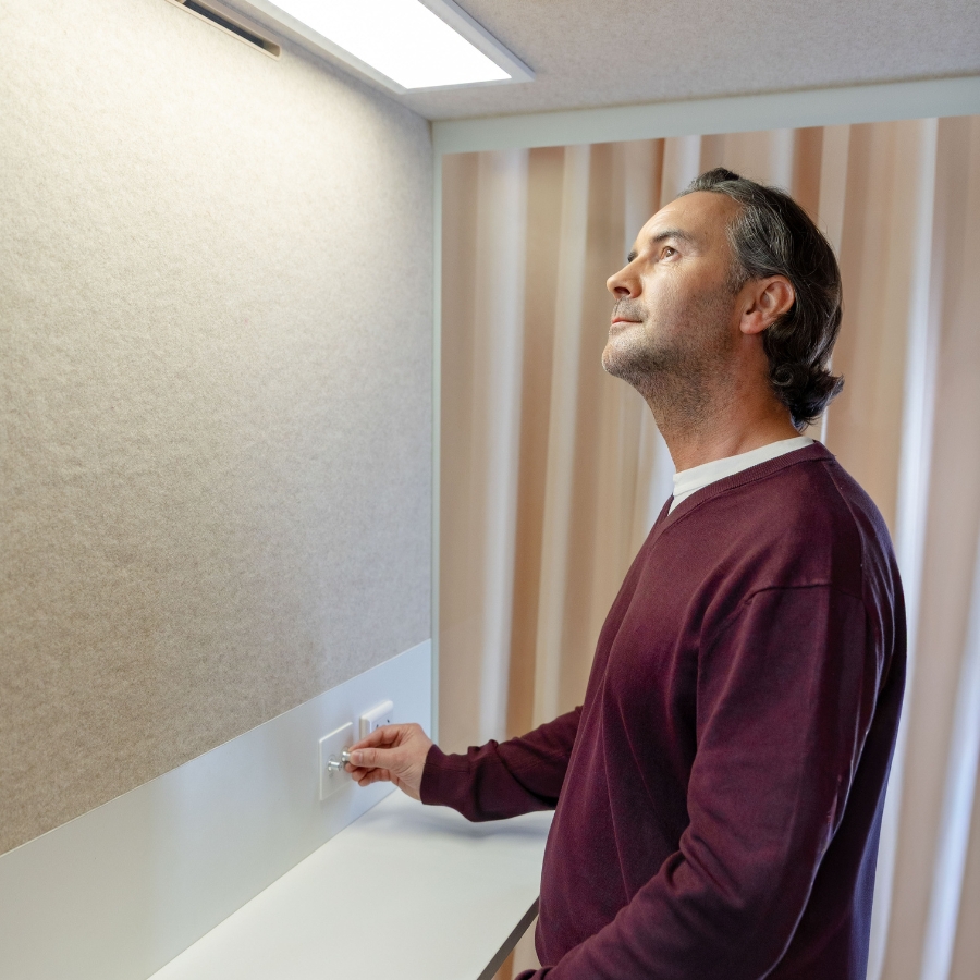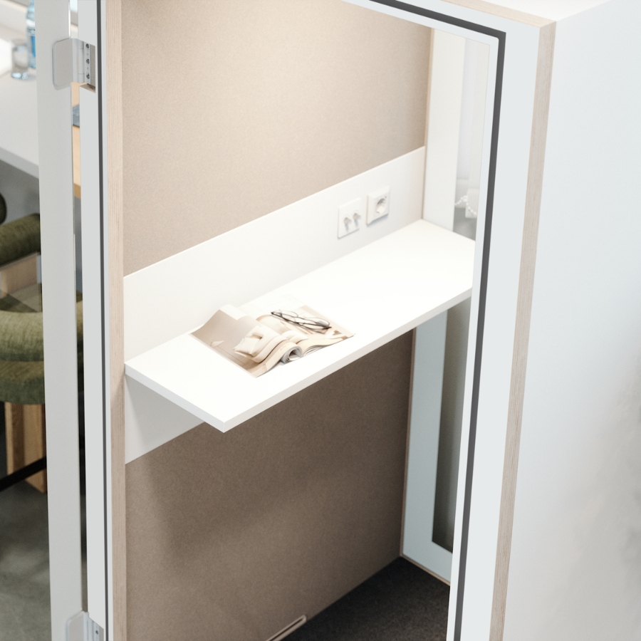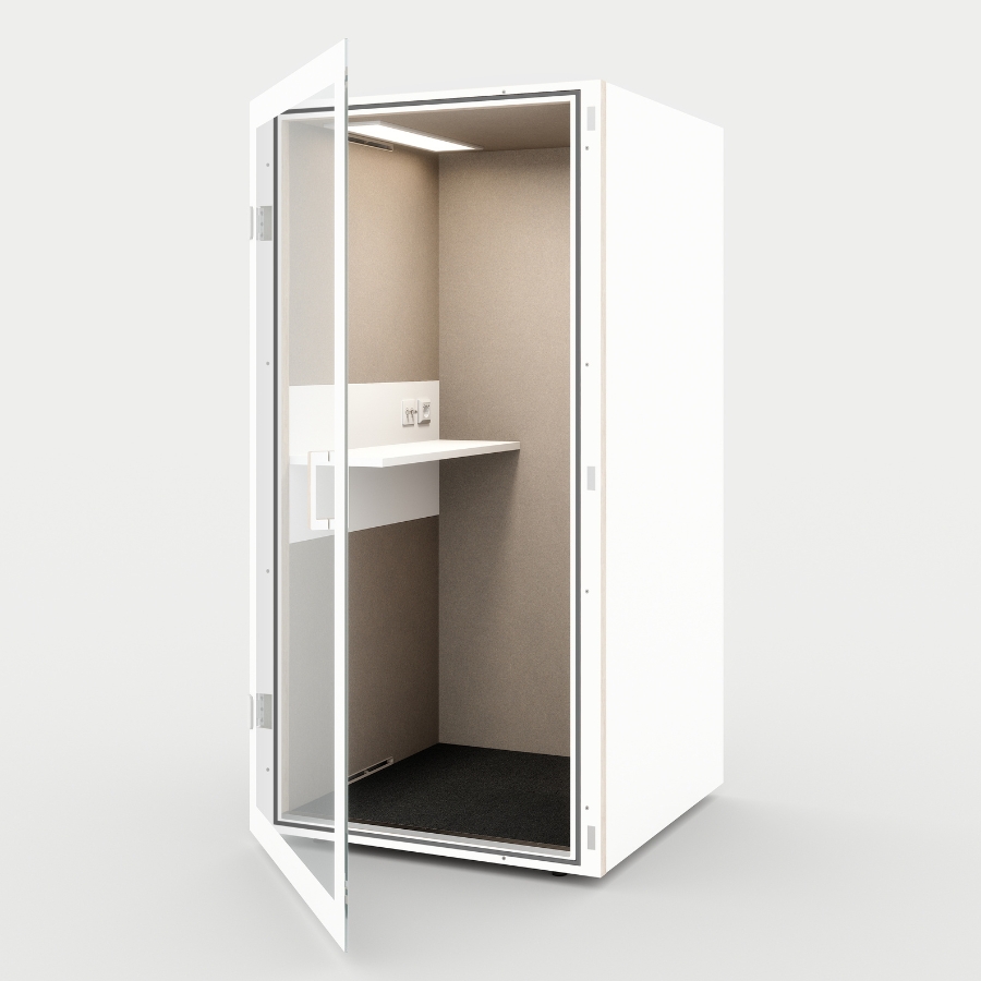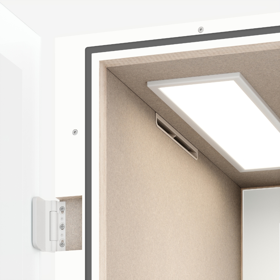 Ihr 4-Ventilatoren-System sorgt im Vergleich zu herkömmlichen Telefonboxen für einen deutlich höheren Luftdurchsatz – kühle Luft wird von unten eingesogen und warme Luft effektiv abgeführt. So bleibt das Klima auch bei längeren Gesprächen oder Arbeitsphasen angenehm frisch. Das stufenlos regulierbare LED-Licht mit über 500 Lux sorgt für eine gleichmäßige, natürliche Beleuchtung, die Konzentration und Wohlbefinden fördert.