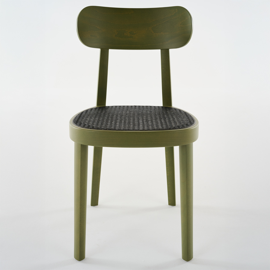 THONET 118 Holzstuhl Dark Melange graugrün | Rohrgeflecht-Sitz | Buche gebeizt graugrün
