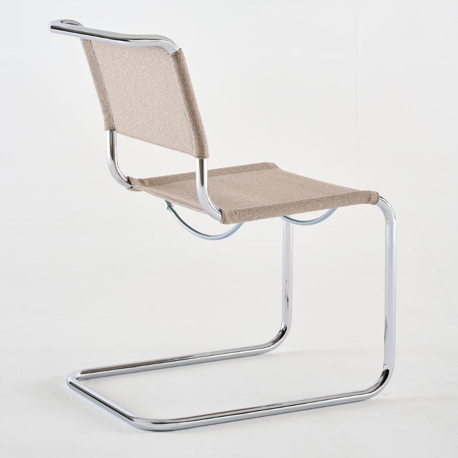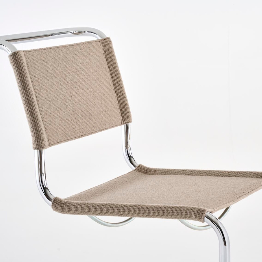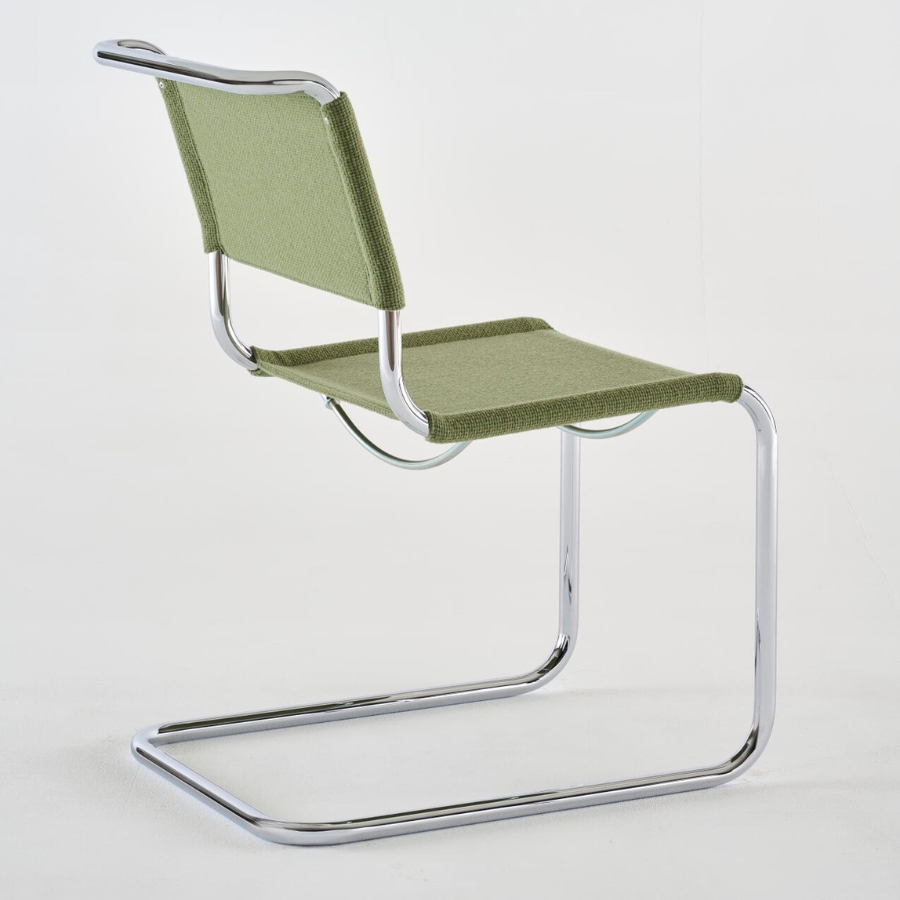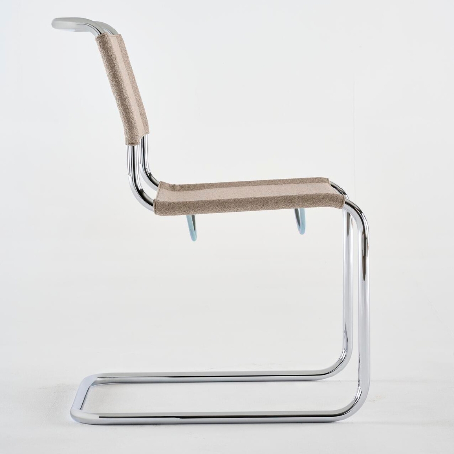 Durch die textile Bespannung erhält der erste Freischwinger von Mart Stam aus dem Jahr 1926 eine neue visuelle und haptische Qualität: Aus dem puristischen Entwurf wird ein wohnlicher Stuhl, der weich und einladend wirkt, ohne seine kubische Form und seine charakteristische Klarheit zu verlieren.