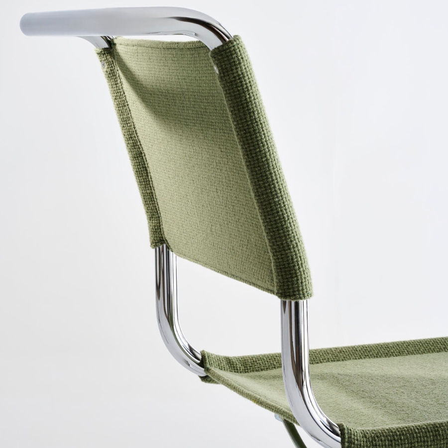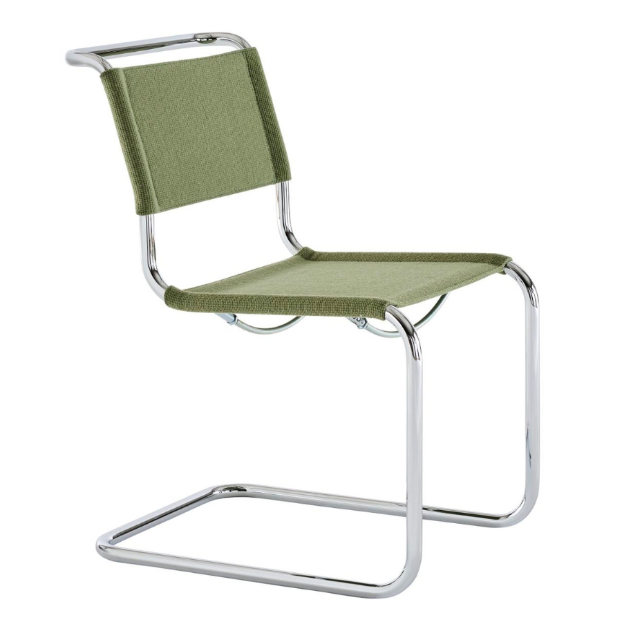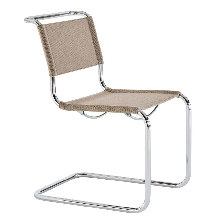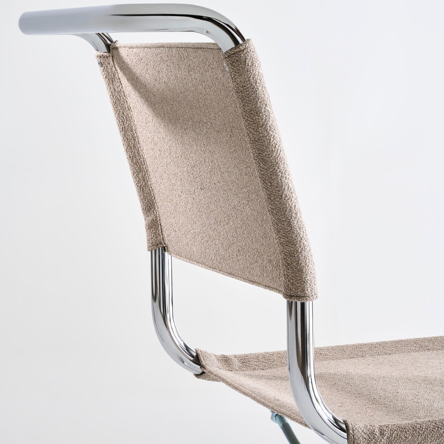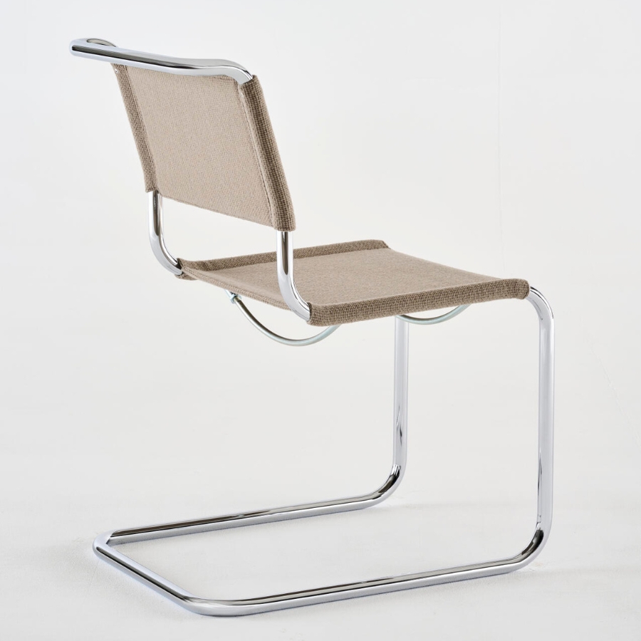 Durch die textile Bespannung erhält der erste Freischwinger von Mart Stam aus dem Jahr 1926 eine neue visuelle und haptische Qualität: Aus dem puristischen Entwurf wird ein wohnlicher Stuhl, der weich und einladend wirkt, ohne seine kubische Form und seine charakteristische Klarheit zu verlieren.