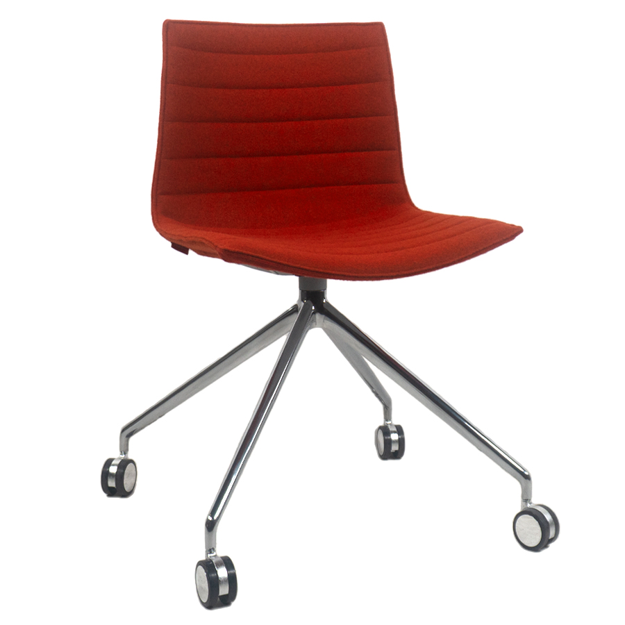 ABVERKAUF: Arper CATIFA 46 0376 Stuhl gepolstert | Bezug Divina rostrot | Sternfuß auf Rollen