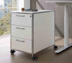 Setzen auch Sie auf den Bosse Modul Space Tisch, Bosse Modul Space Schrank oder Bosse Modul Space Rollcontainer, wenn Sie unkompliziert zur funktionalen Büro-Einrichtung mit ansprechendem Flair gelangen möchten. Der Clou: Durch die Fast & Easy Technik sind die Möbel so clever konstruiert, dass auch im Rollcontainer das Schublade Ausbauen kinderleicht vorzunehmen ist.