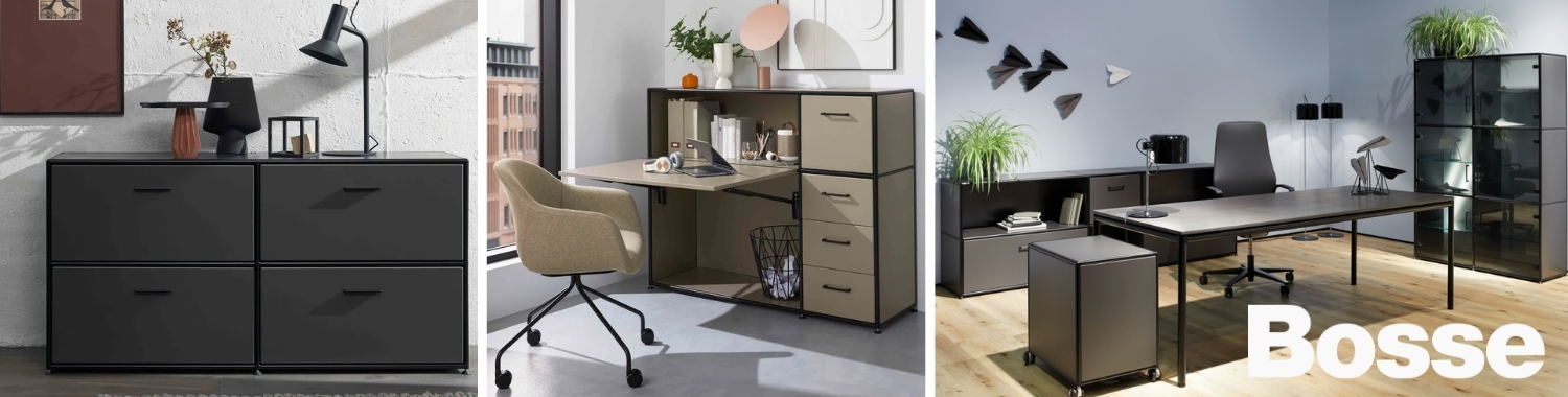 BOSSE SOLUTIONS Highboard | Basaltgrau | 3 Schubladen | Black Edition