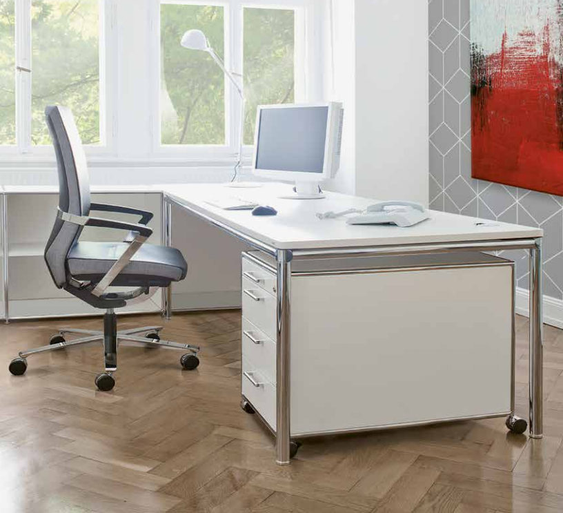 Die Qualität eines hochwertigen Schreibtisches erkennt man in vielen Details. Da wäre beispielsweise das Gestell. Hochwertiger Stahl elegant verchromt ergibt im Gesamtbild ein Design, das ebenso geschäftsmäßig wie seriös daherkommt. Schreibtischplatten, die mit hochwertigem Melamin beschichtet sind, sind nicht nur widerstandsfähiger. Sie verfügen auch über eine hohe Stand- und Biegefestigkeit und bringen dabei oftmals auch noch ein dekoratives Design mit.