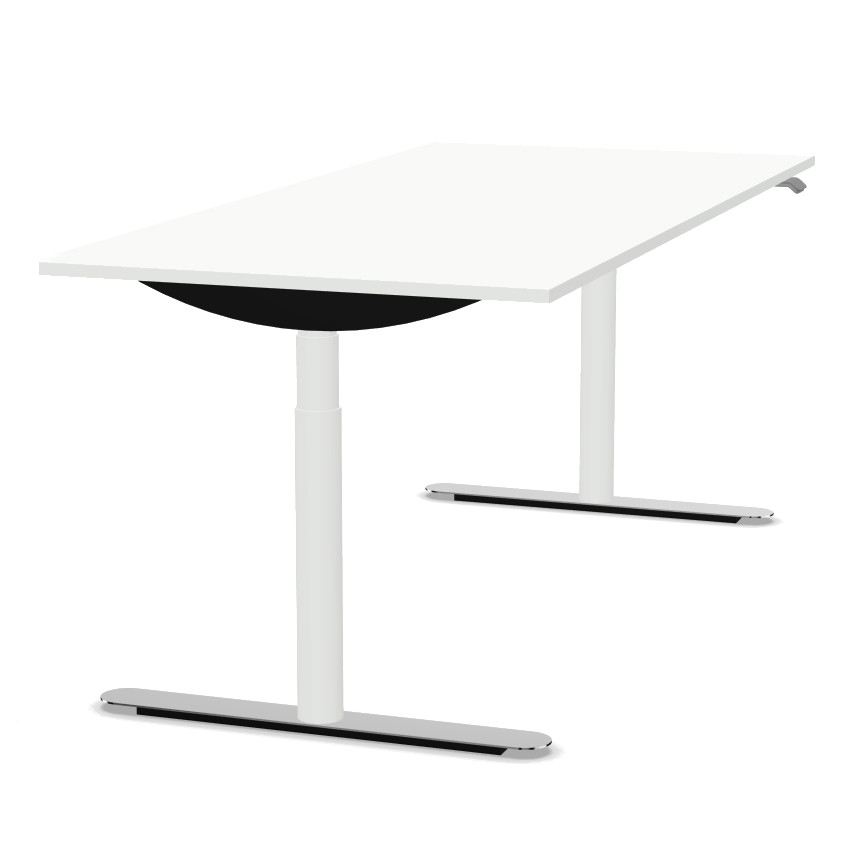 Ein Bewegen in die gewünschte Richtung genügt, um den Tisch zur nächsten gespeicherten Höhe zu fahren. Das leicht wirkende und trotzdem äußerst stabile Gestell in verschiedenen Farben steht auf hochwertigen Kufen.