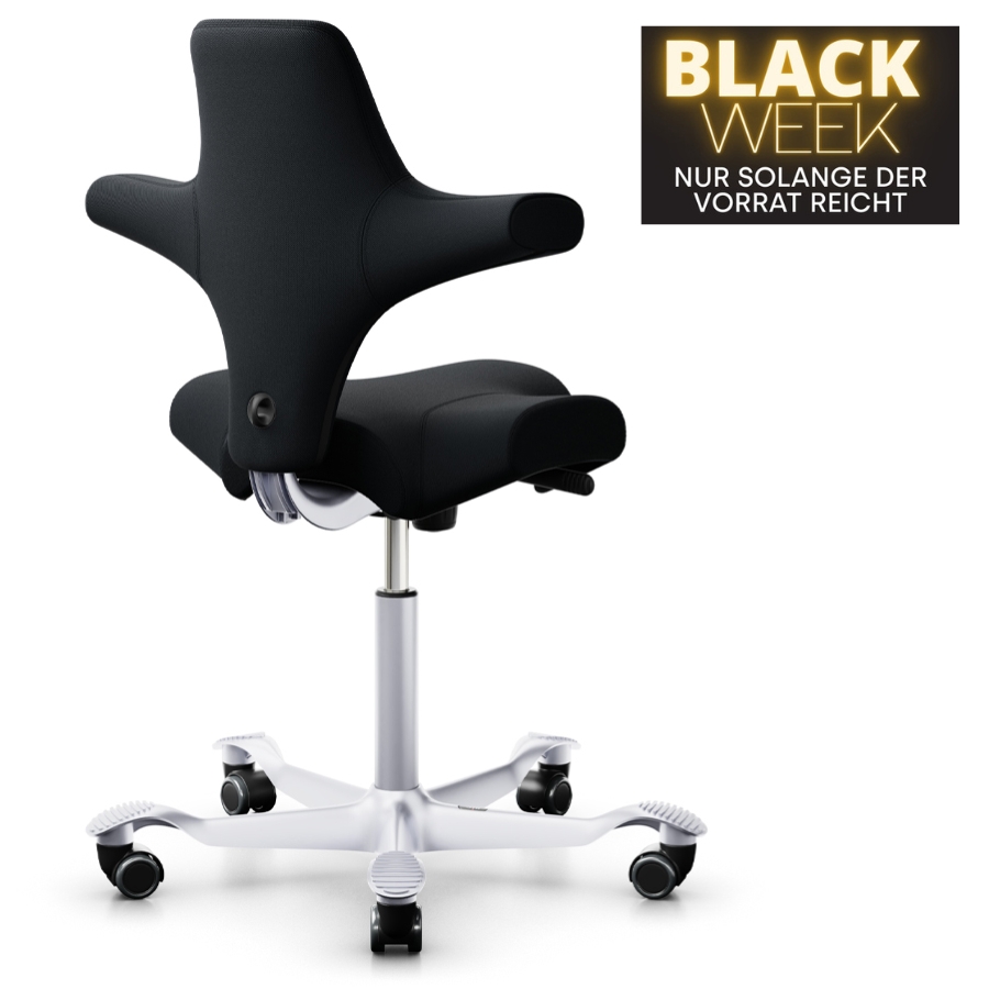 - Sattelform: Der Sitz des Capiscos ermöglicht eine Vielzahl von Sitzpositionen: Nach vorne, seitlich und rückwärts. Dies fördert Bewegung und Flexibilität am Arbeitsplatz