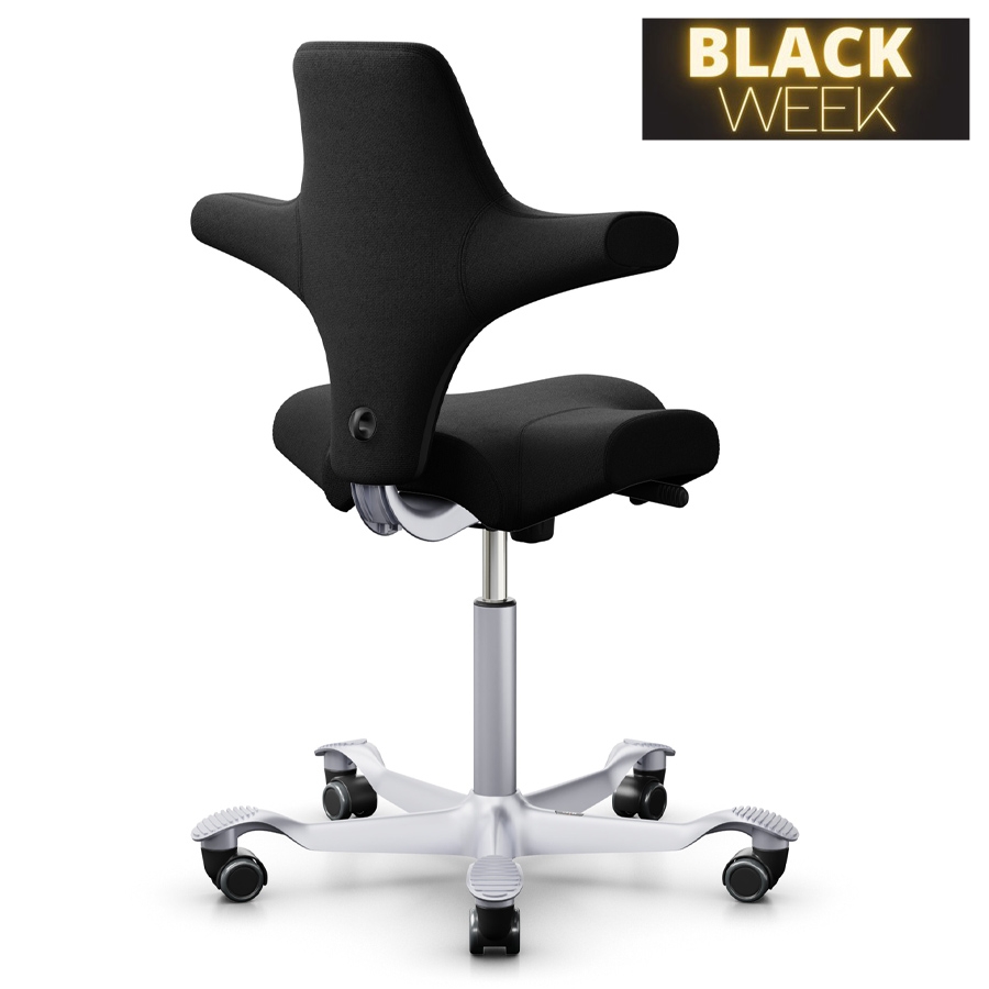 - Sattelform: Der Sitz des Capiscos ermöglicht eine Vielzahl von Sitzpositionen: Nach vorne, seitlich und rückwärts. Dies fördert Bewegung und Flexibilität am Arbeitsplatz