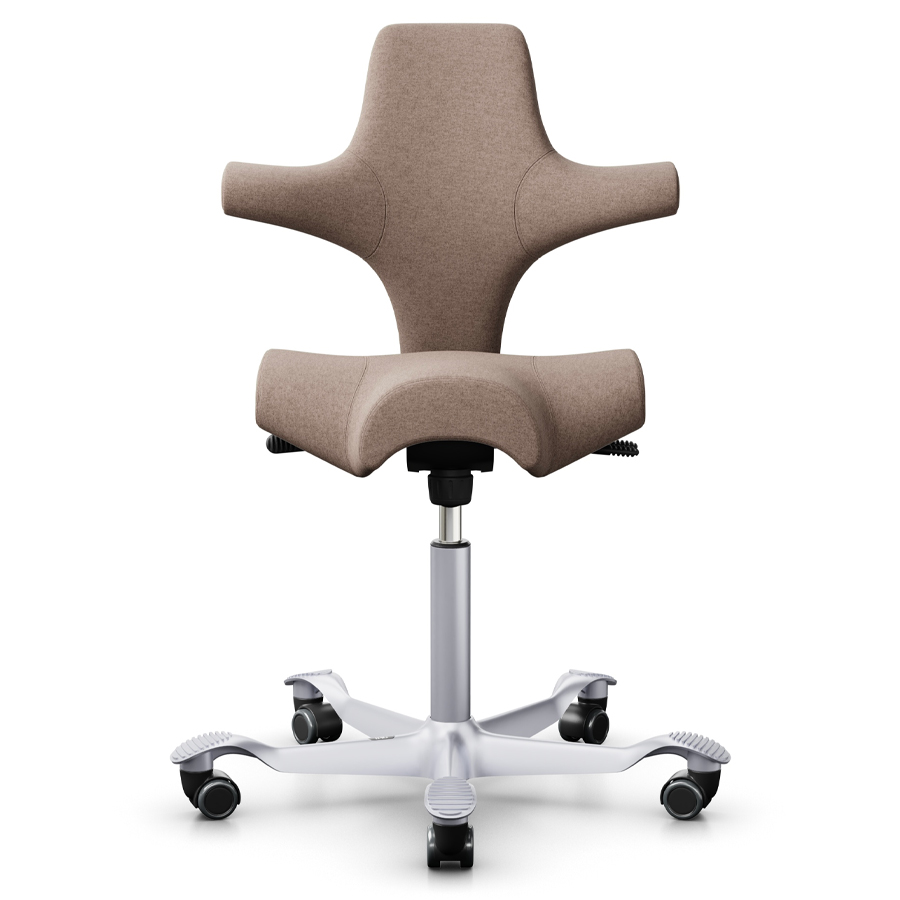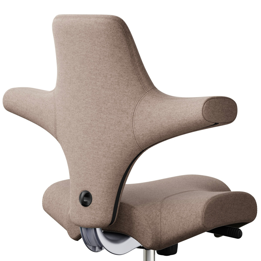 - Sattelform: Der Sitz des Capiscos ermöglicht eine Vielzahl von Sitzpositionen: Nach vorne, seitlich und rückwärts. Dies fördert Bewegung und Flexibilität am Arbeitsplatz