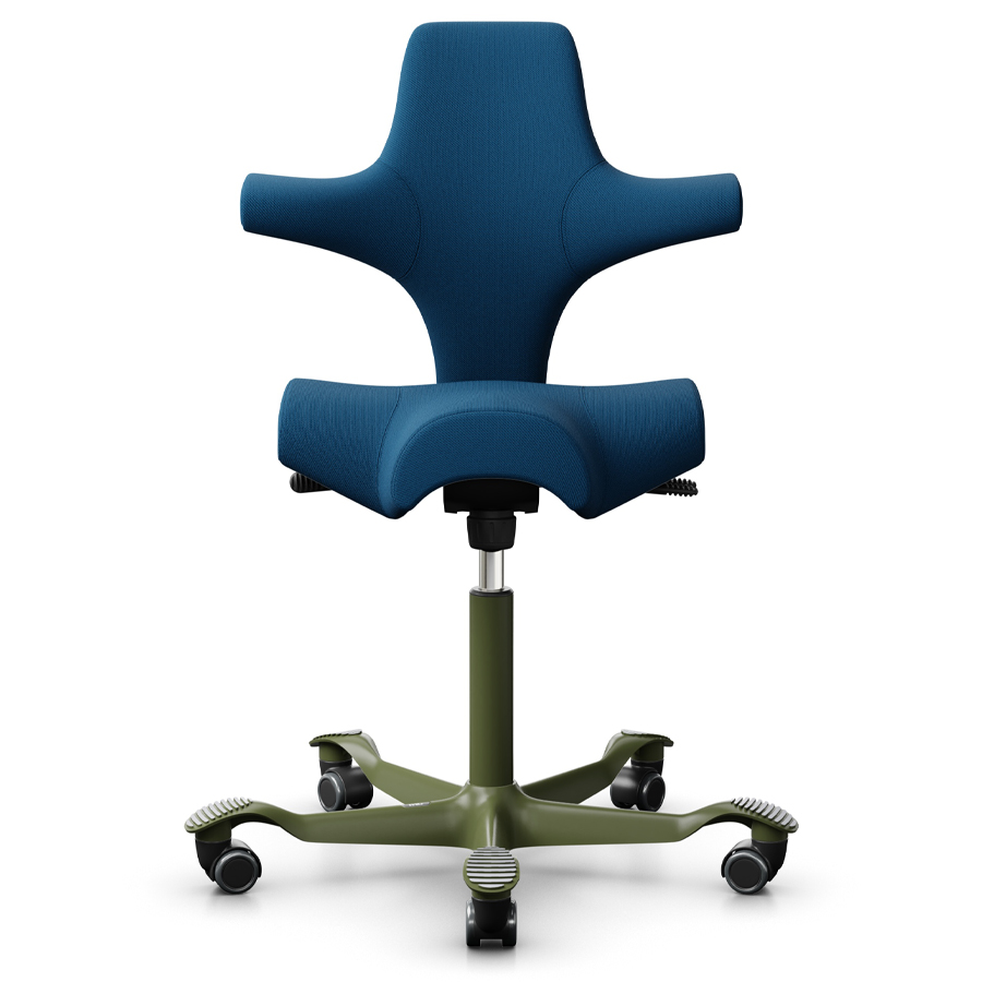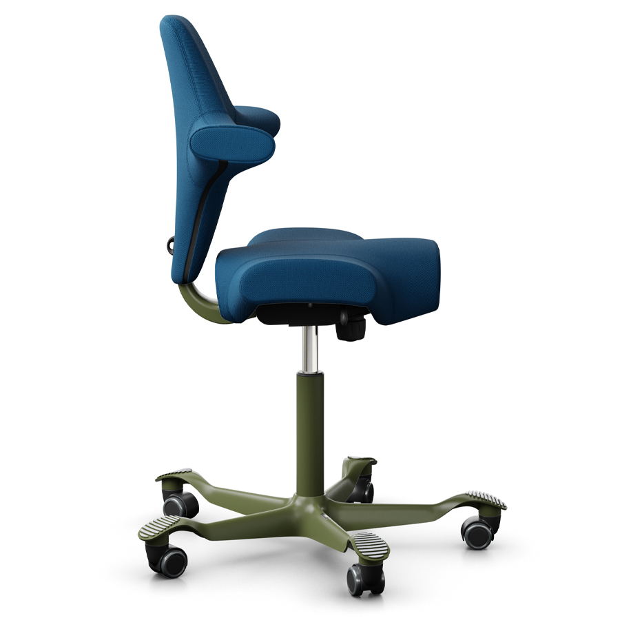 • Sattelform: Der Sitz des Capiscos ermöglicht eine Vielzahl von Sitzpositionen: Nach vorne, seitlich und rückwärts. Dies fördert Bewegung und Flexibilität am Arbeitsplatz