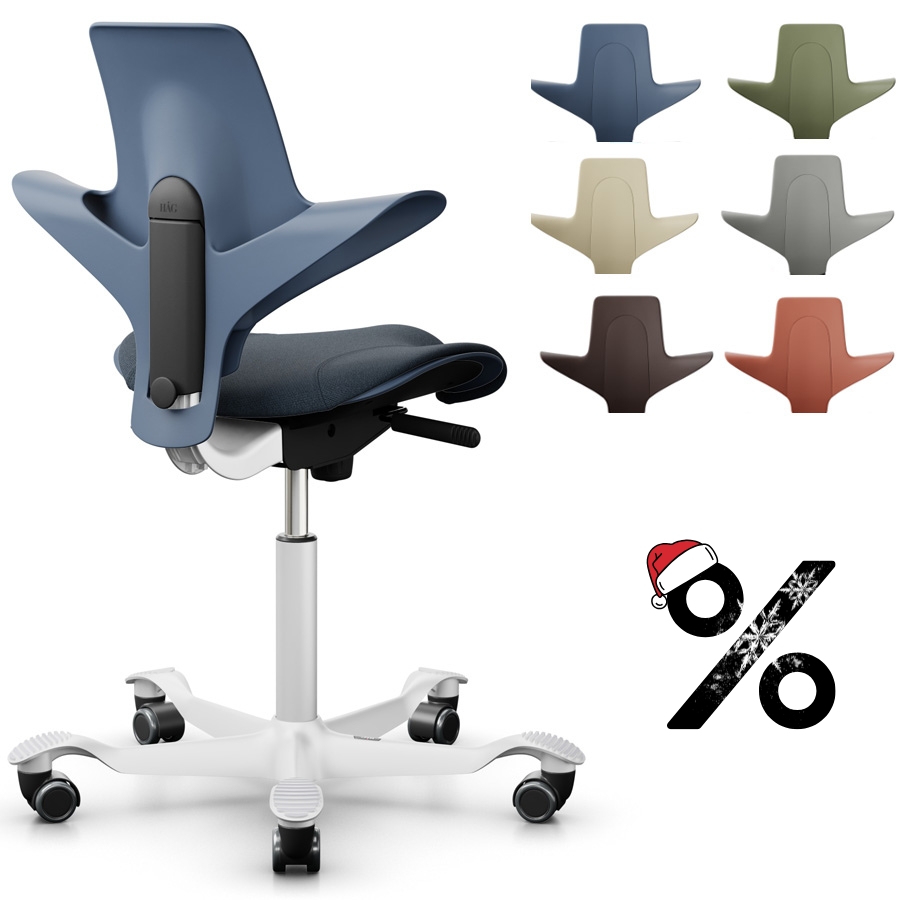 - Sattelform: Der Sitz des Capiscos ermöglicht eine Vielzahl von Sitzpositionen: Nach vorne, seitlich und rückwärts. Dies fördert die Bewegung und Flexibilität am Arbeitsplatz