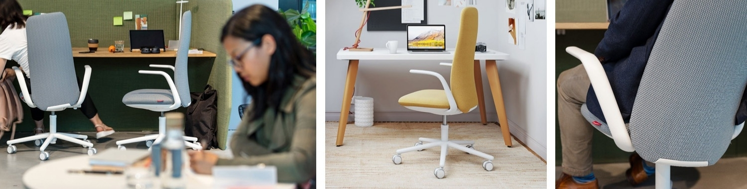 Der Benutzer erhält dadurch eine optimale Unterstützung der Lendenwirbelsäule, während er ein Höchstmaß an Bewegungsfreiheit auf dem Stuhl genießt. Durch diese perfekte Ergonomie gehören starre und schädliche Sitzhaltungen der Vergangenheit an und man fühlt sich auch nach acht Stunden oder mehr auf dem Haworth Nia noch wohl und leistungsfähig. Büroarbeiter, die den Haworth Bürostuhl im Test ausprobieren, sind regelmäßig vom dynamischen, ergonomischen Sitzen auf dem Stuhl angetan.