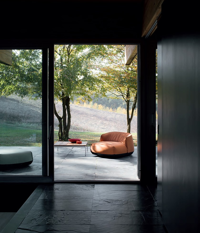 Brioni ist eine Kollektion, die ihren Namen von einem berühmten Archipel in der Adria erhält, da auch die Poufs, Lounge-Stühle und Daybeds wie kleine Inseln aus dem Meer ragen. Das Design zeichnet sich durch den dunklen Streifen im unteren Bereich aus, der den direkten Kontakt zwischen dem Boden und dem Bezug verhindert.