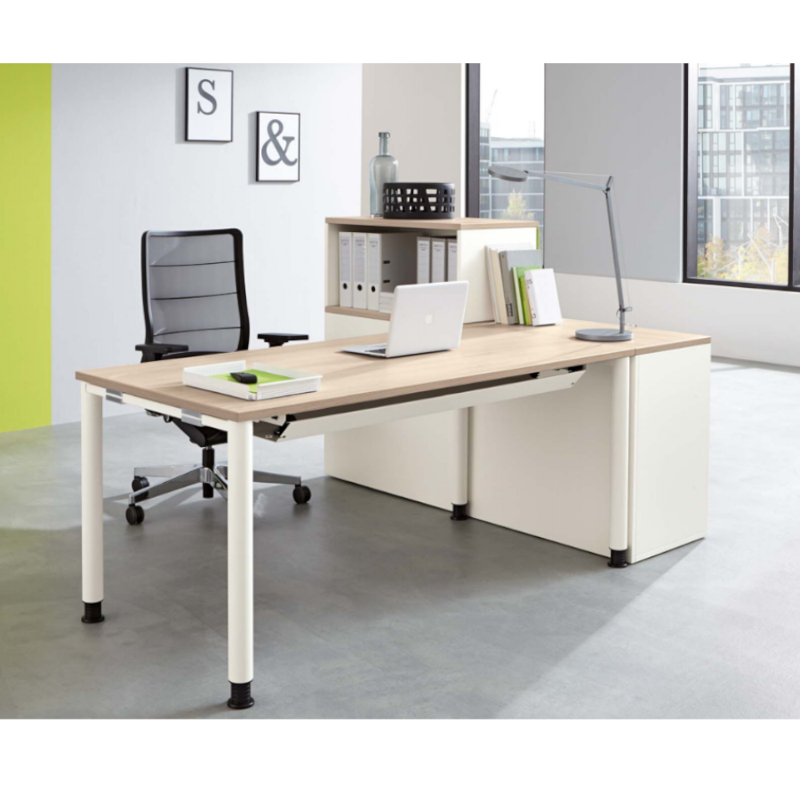 Ein äußerst interessantes Design besitzt auch der SINAC Bürotisch von Palmberg. Zwar ist er nicht mittels Elektromotor höhenverstellbar, jedoch besitzt er dank Rohr-in-Rohr-Gestell manuell verstellbare Tischbeine. Zur Auswahl stehen beim Palmberg SINAC Modelle mit Rundrohr oder Quadratrohr. Diese gibt es mit verschiedenen Materialoptionen wie Weißaluminium, Chrom oder Anthrazit. Bei den Tischplatten lässt sich neben verschiedenen Farben auch zwischen verschiedenen Holzvarianten auswählen, beispielsweise Ahorn, Akazie, Buche, Eiche oder Nussbaum.